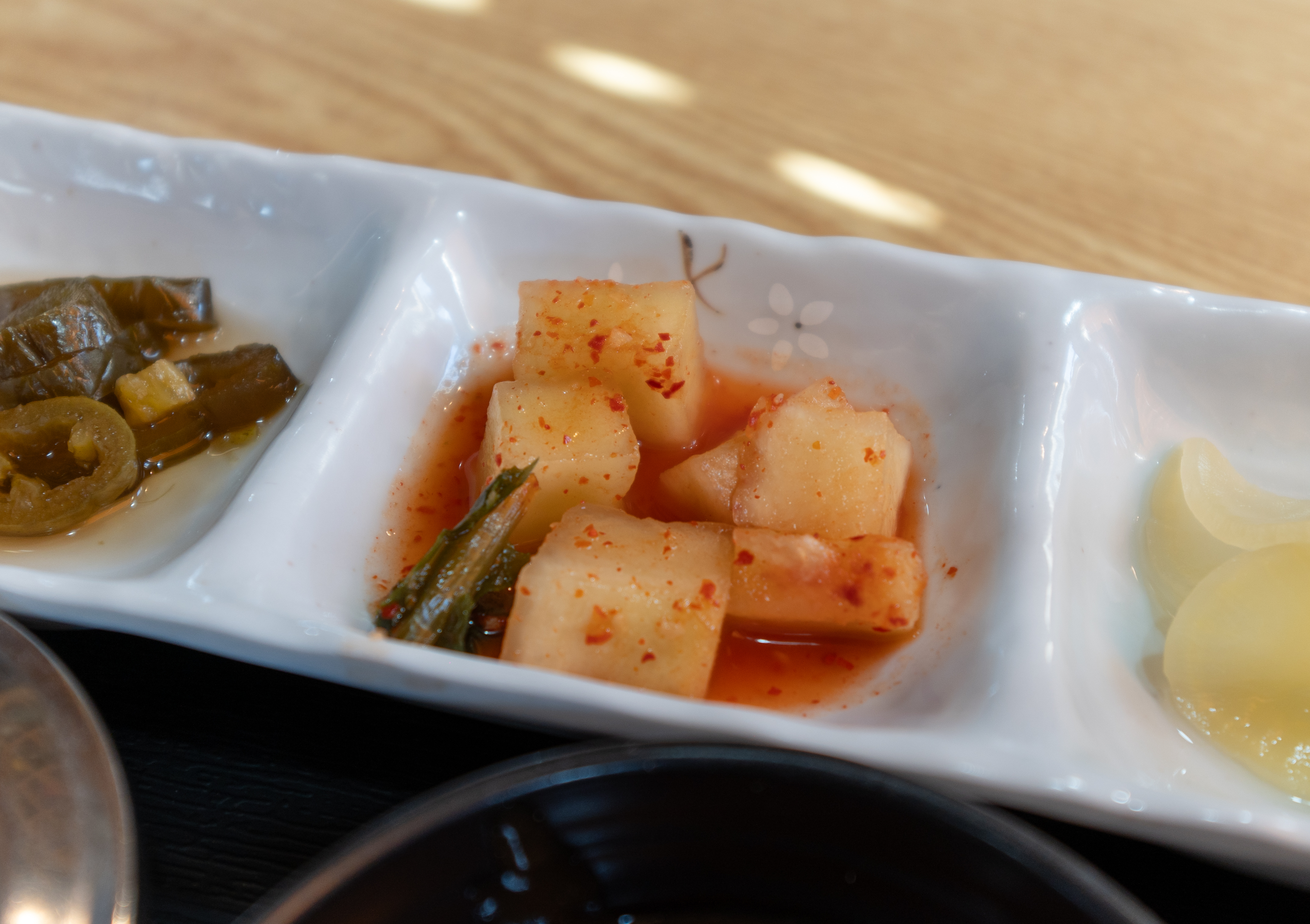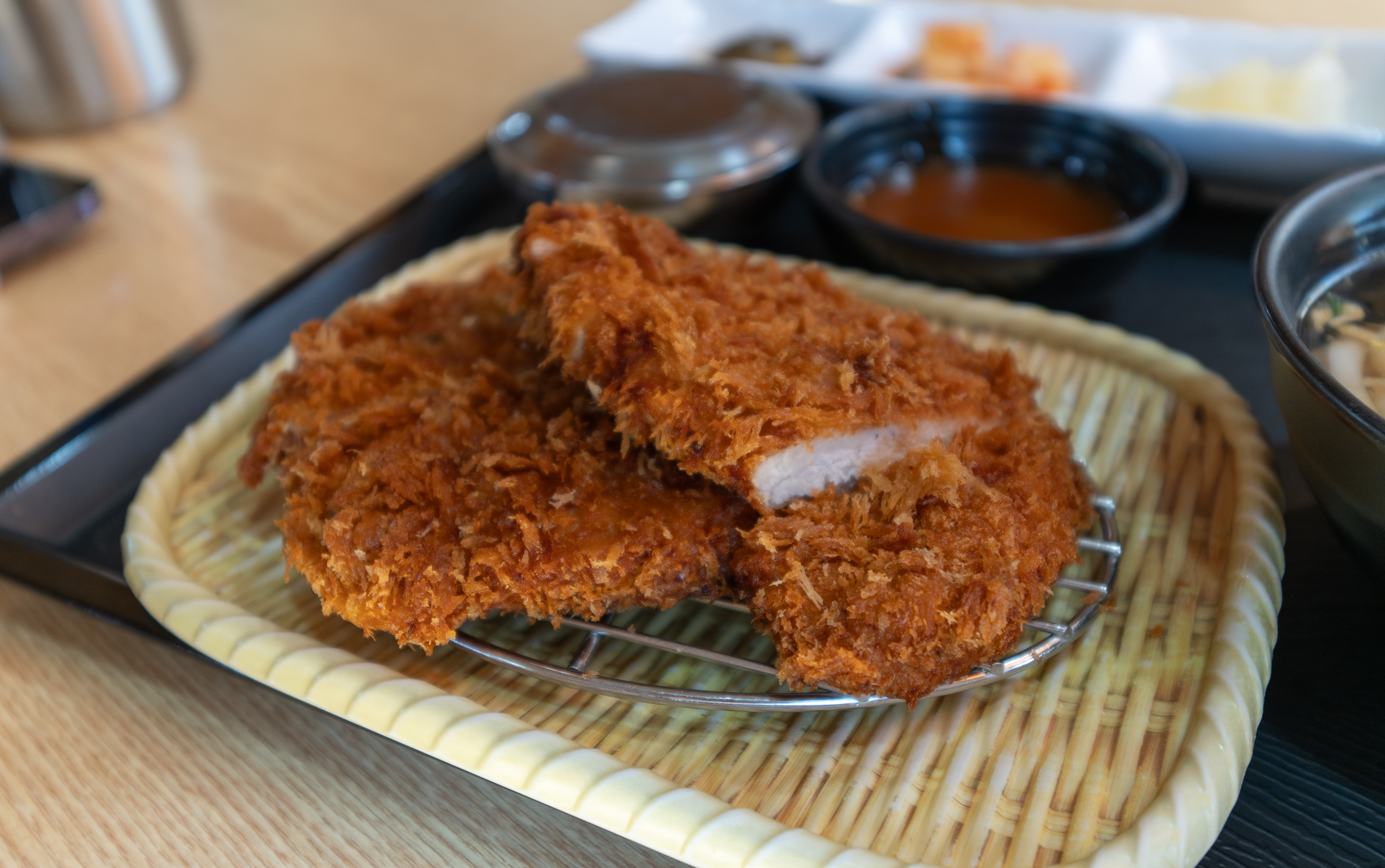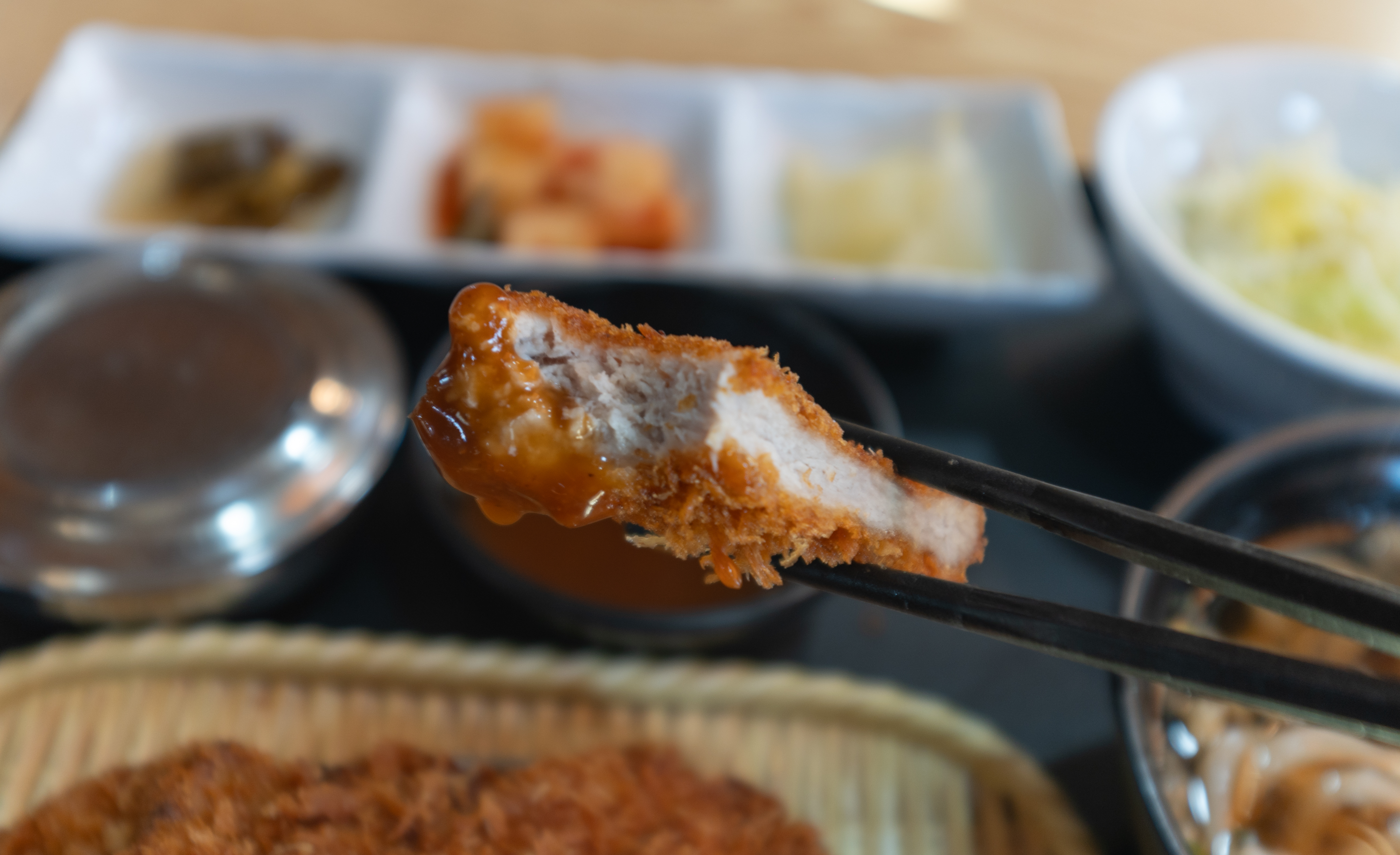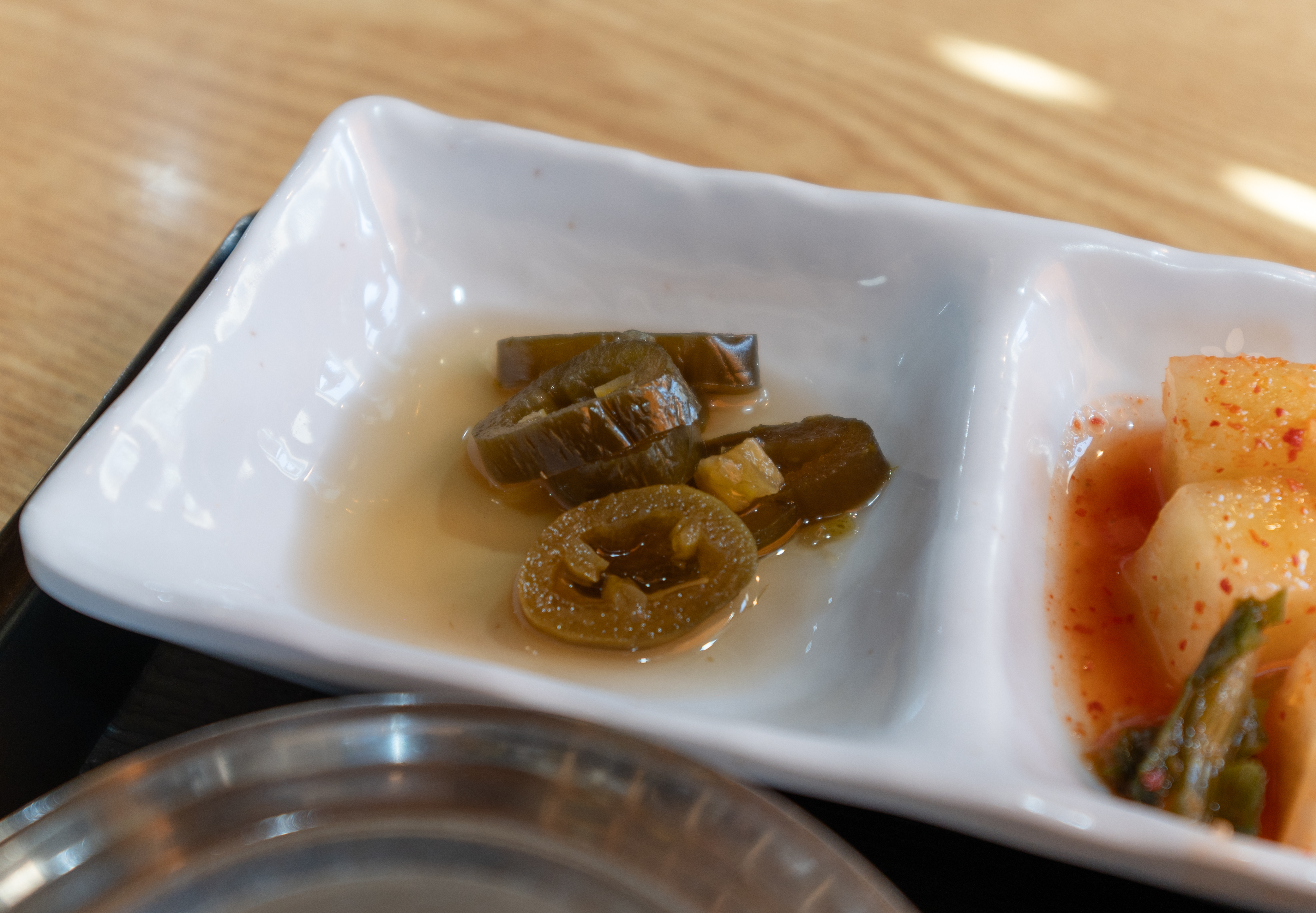 마니온의 돈까스는 바삭하게 잘 구워 나왔고 적당히 두께감도 있어서 식감이 참 괜찮았습니다. 반찬으로 나오는 단무지부터 깍두기, 할라피뇨, 샐러드 등 전체적으로 맛이 깔끔하고 좋았습니다.