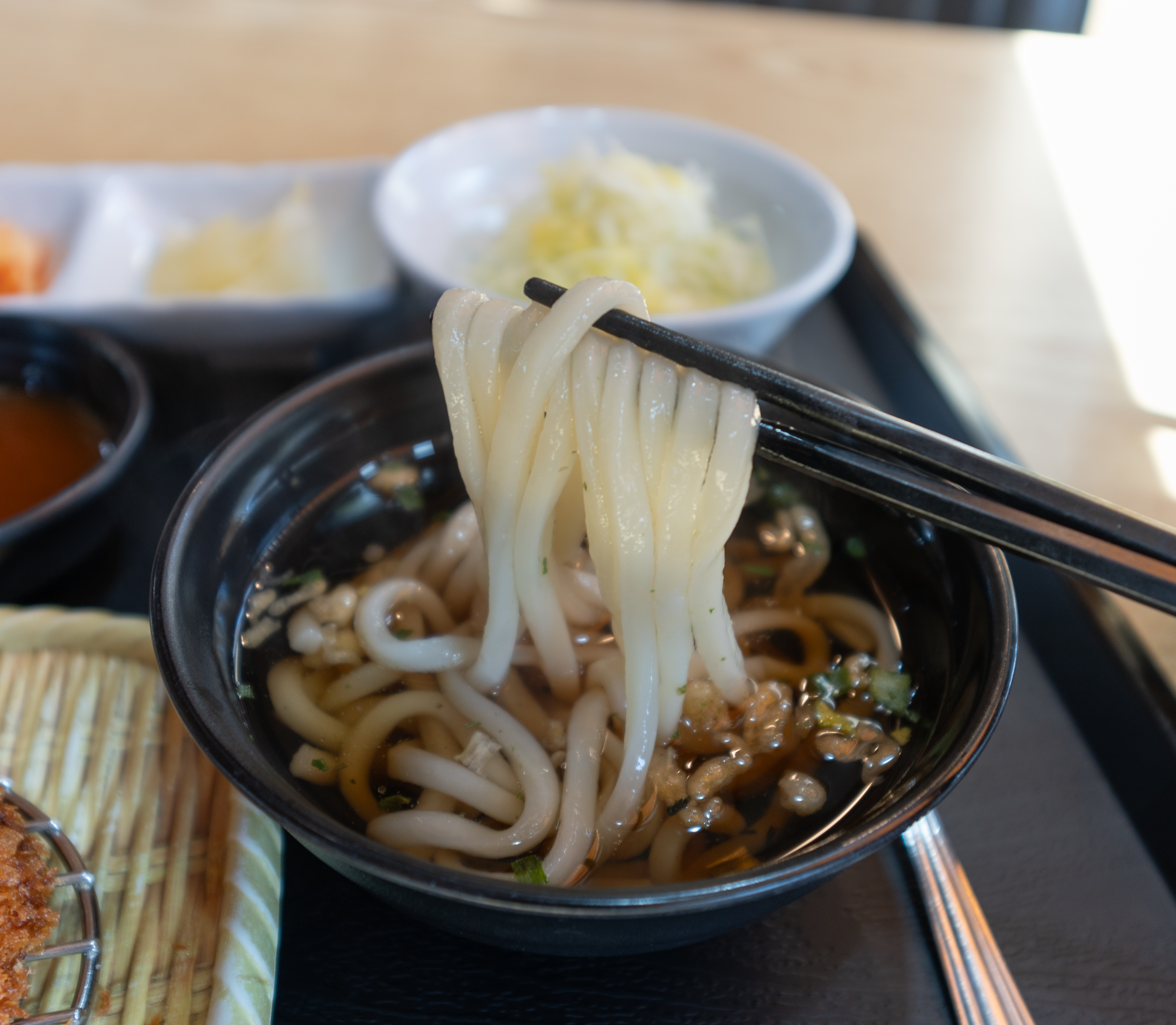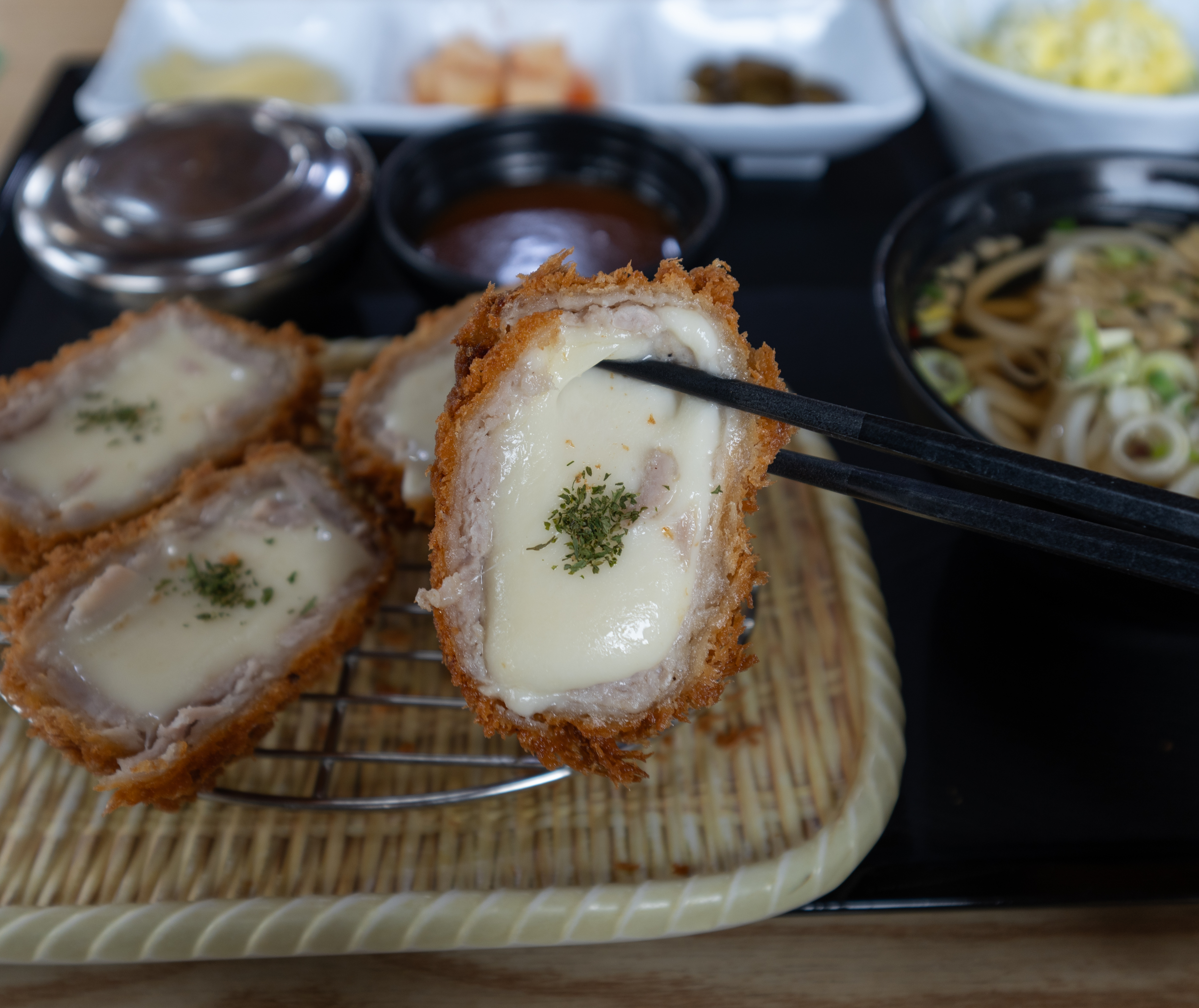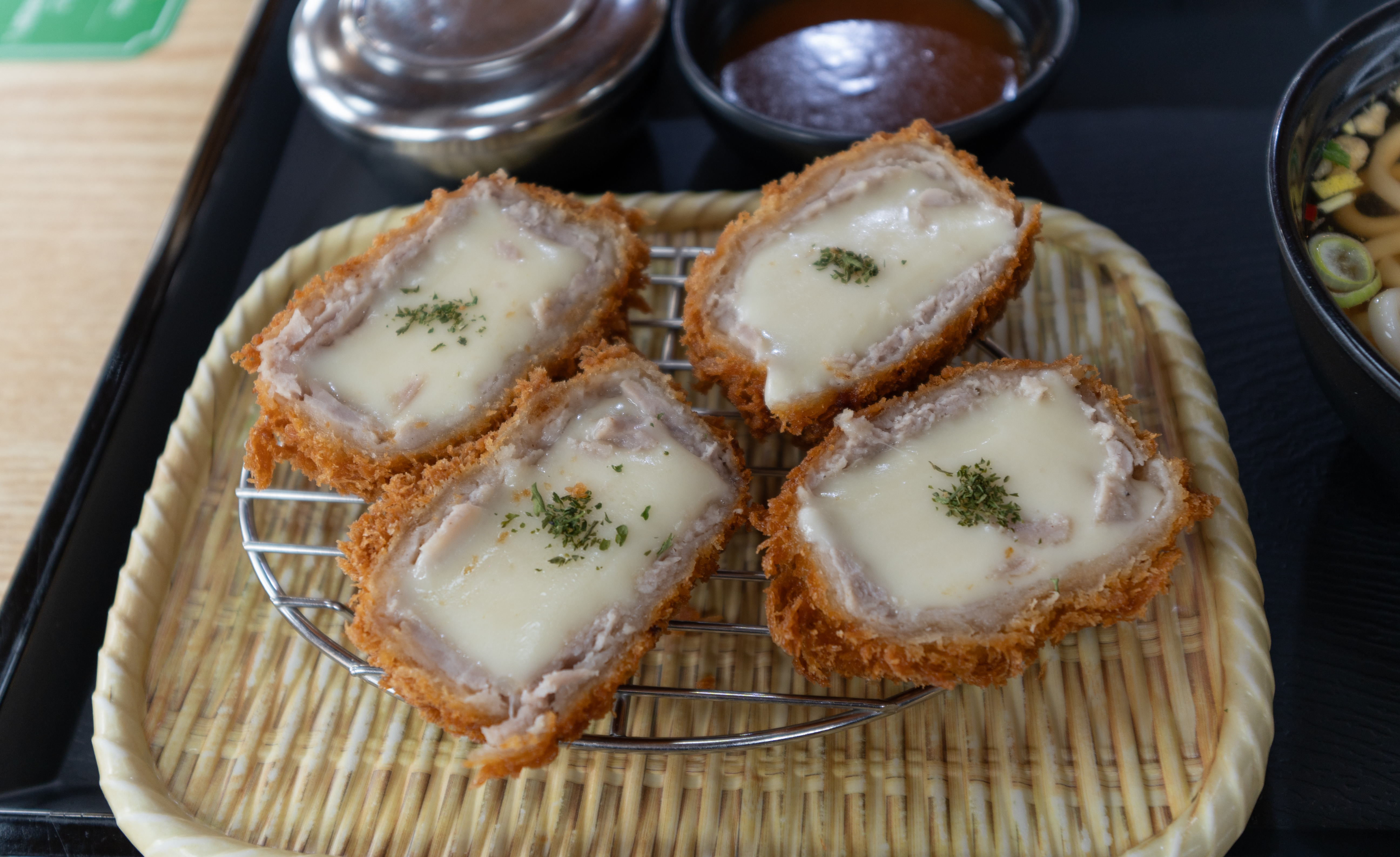 치즈돈까스는 기본 돈까스랑 형태가 살짝 다른데요, 주머니처럼 생긴 돈까스에 쭈-욱 늘어나는 모차렐라 치즈를 듬뿍 넣어 고소하면서도 특색 있는 메뉴였습니다. 치즈돈까스도 기본 돈까스와 마찬가지로 우동과 미니 공깃밥이 같이 제공되고 있었습니다. 이번에 제 블로그에서 새로 소개해드릴 이 메뉴는 어르신들이 좋아할 만한 메뉴였는데요,