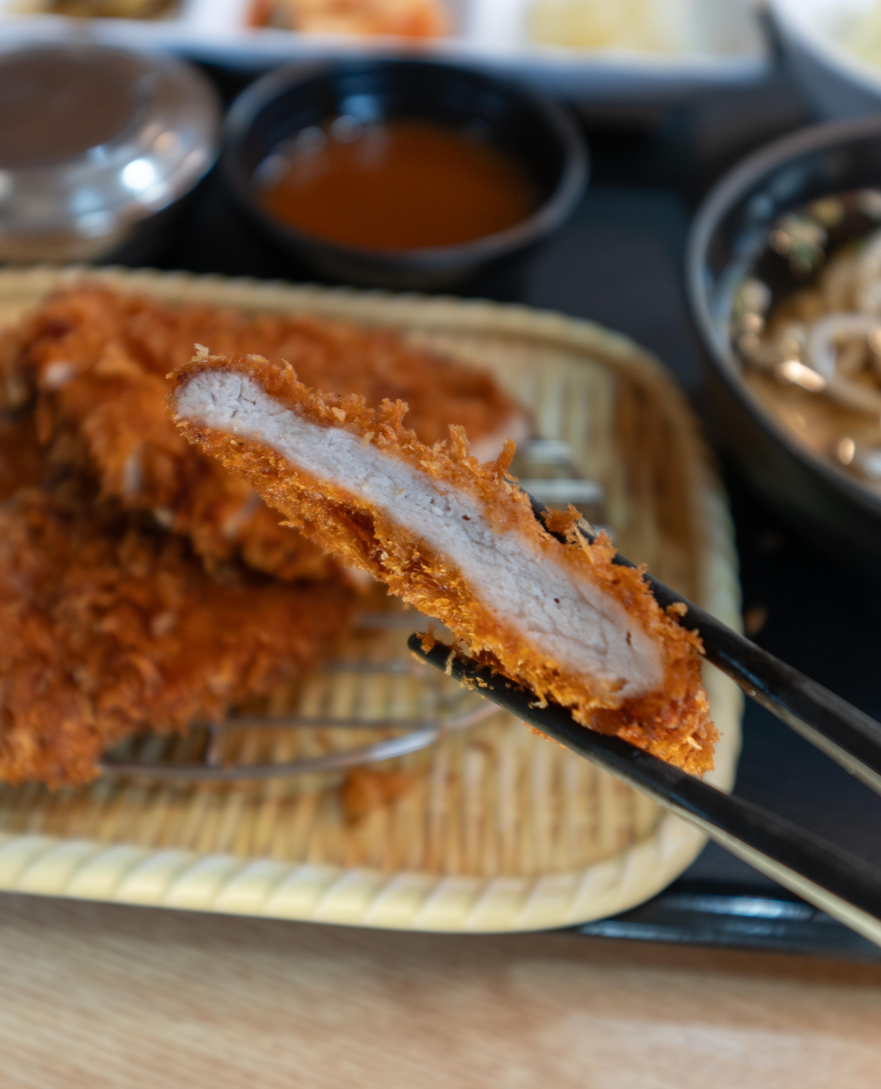 마니온의 돈까스는 바삭하게 잘 구워 나왔고 적당히 두께감도 있어서 식감이 참 괜찮았습니다. 반찬으로 나오는 단무지부터 깍두기, 할라피뇨, 샐러드 등 전체적으로 맛이 깔끔하고 좋았습니다.