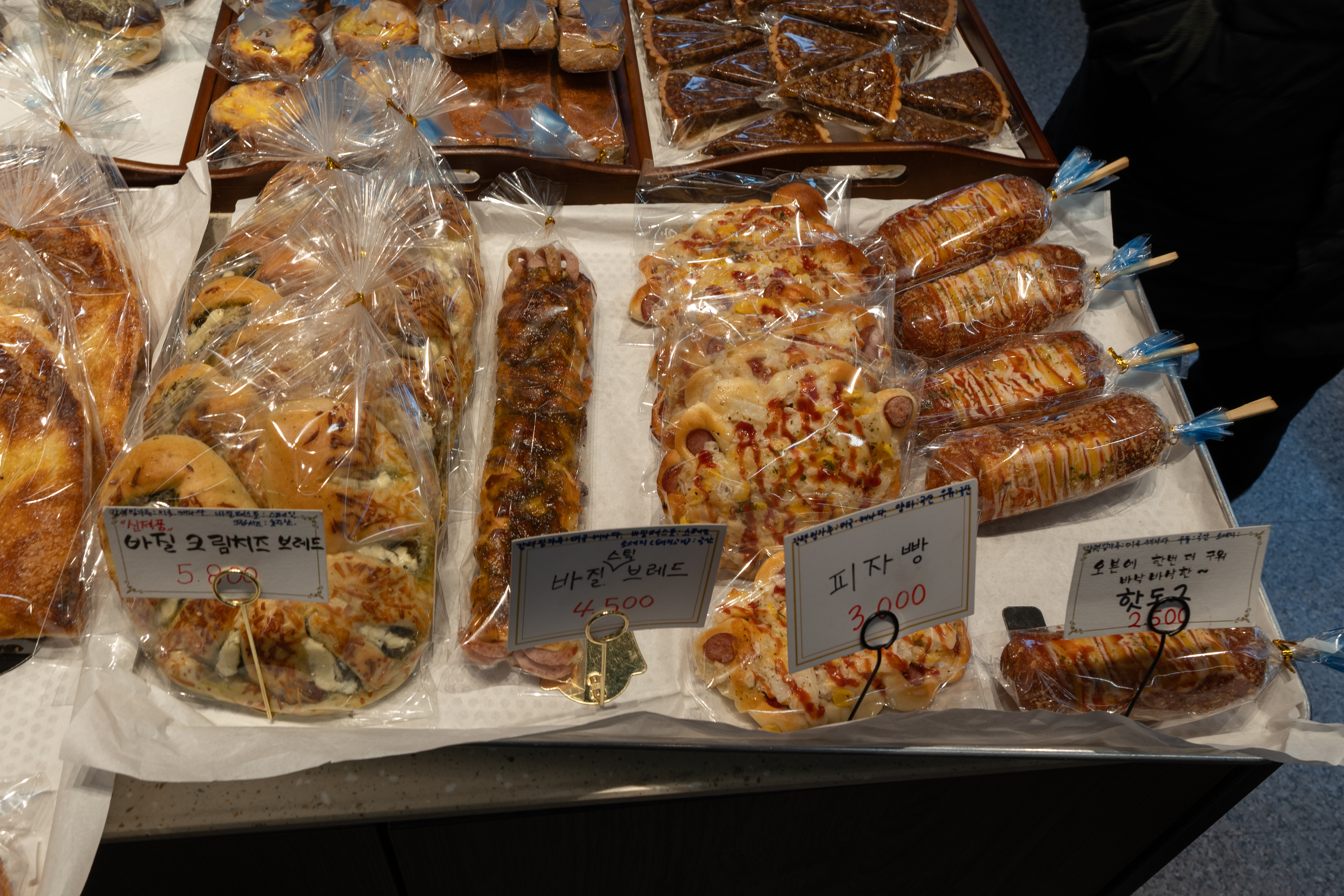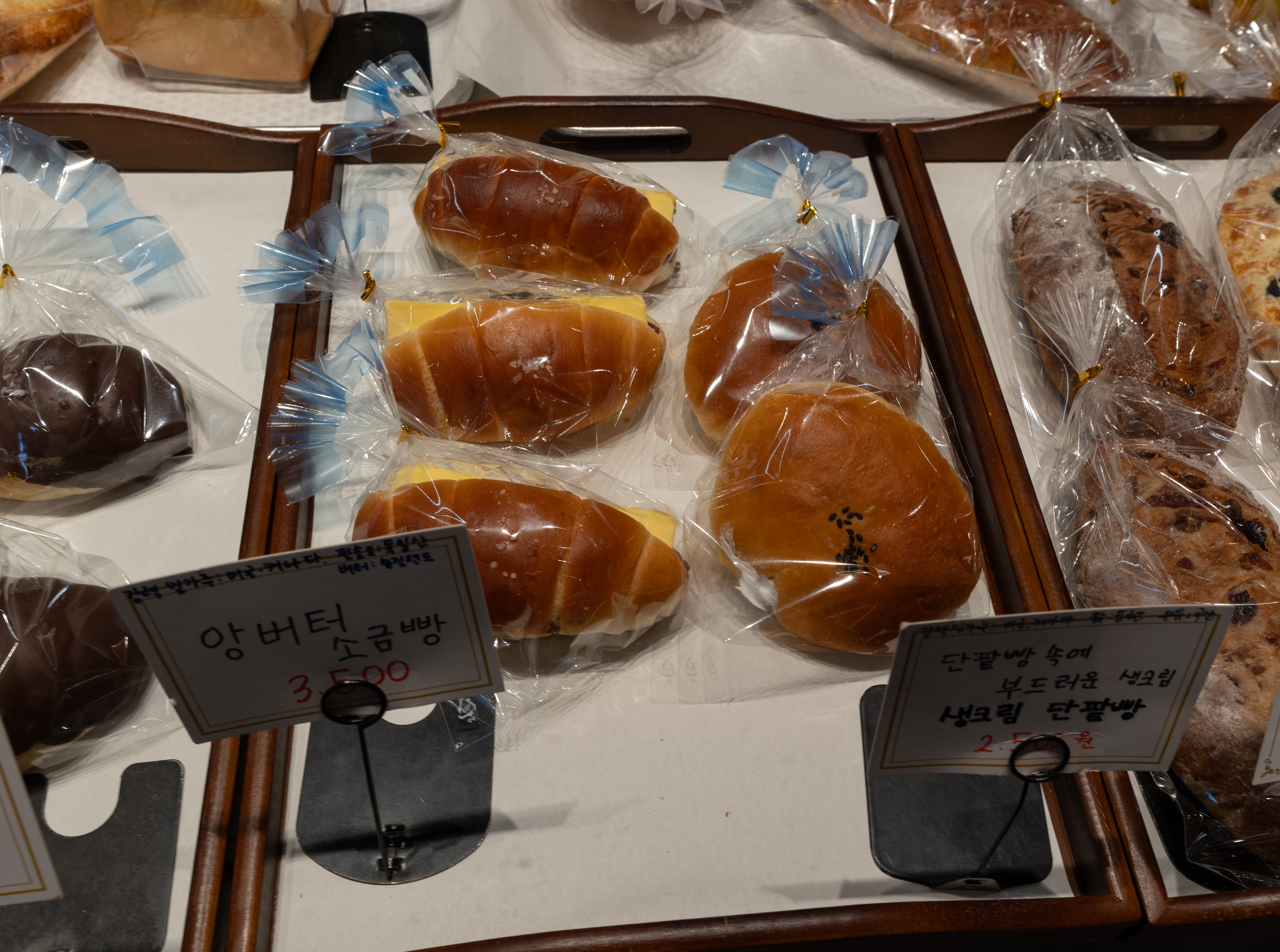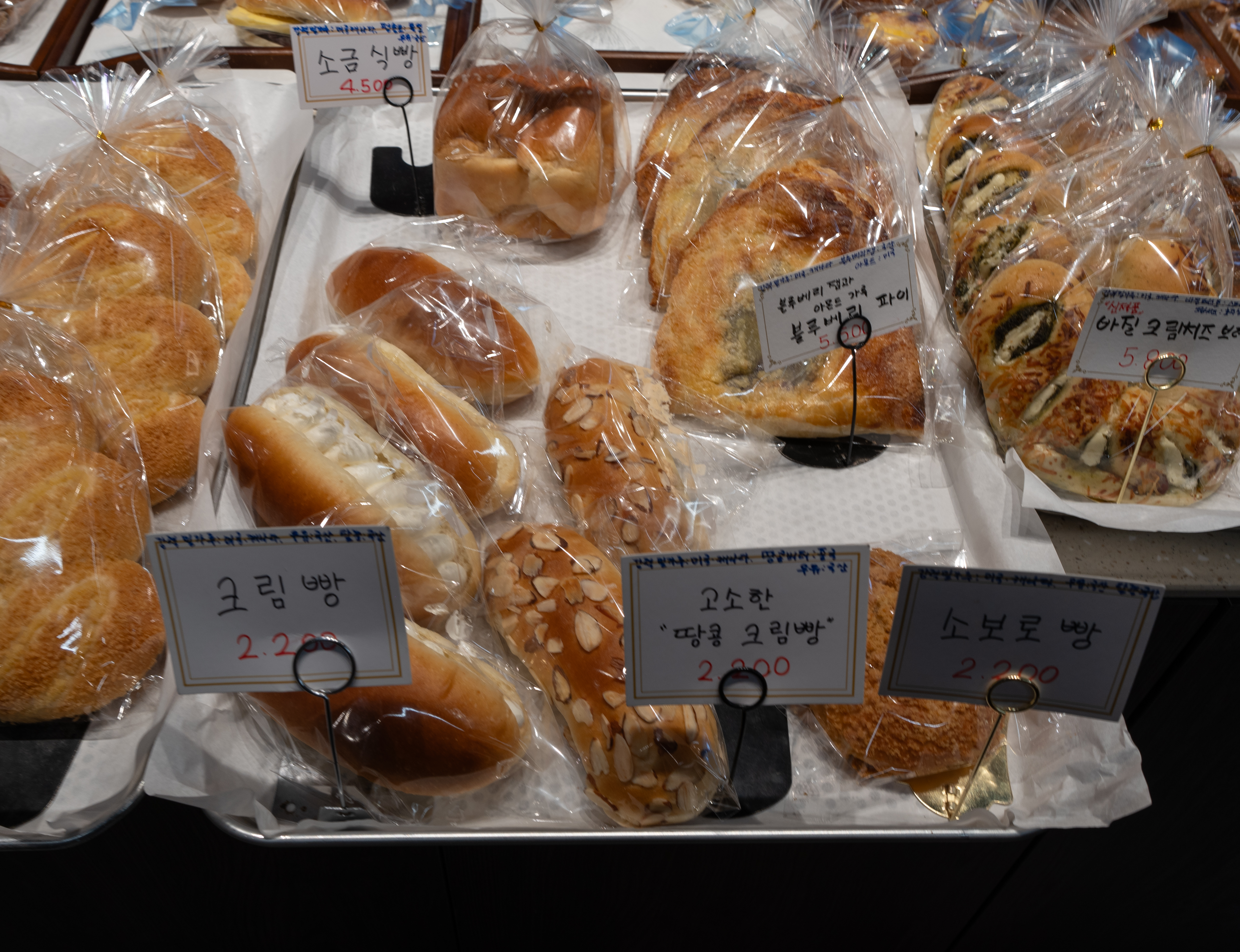코요타빵, 시몬 카스테라, 흑임자 롤케이크, 클래식 롤케이크, 시나몬빵, 밤식빵, 생크림스틱, 마늘바게트, 팥모스, 블루5세기, 크림빵, 소금식빵, 블루베리파이, 땅콩크림빵, 소보로빵, 바질크림치즈브레드, 바질스틱브레드, 피자빵, 핫도그 등이 있었습니다. 상황에 따라 빵의 종류가 변경될 수 있으므로 참고 정도만 하시기 바랍니다.