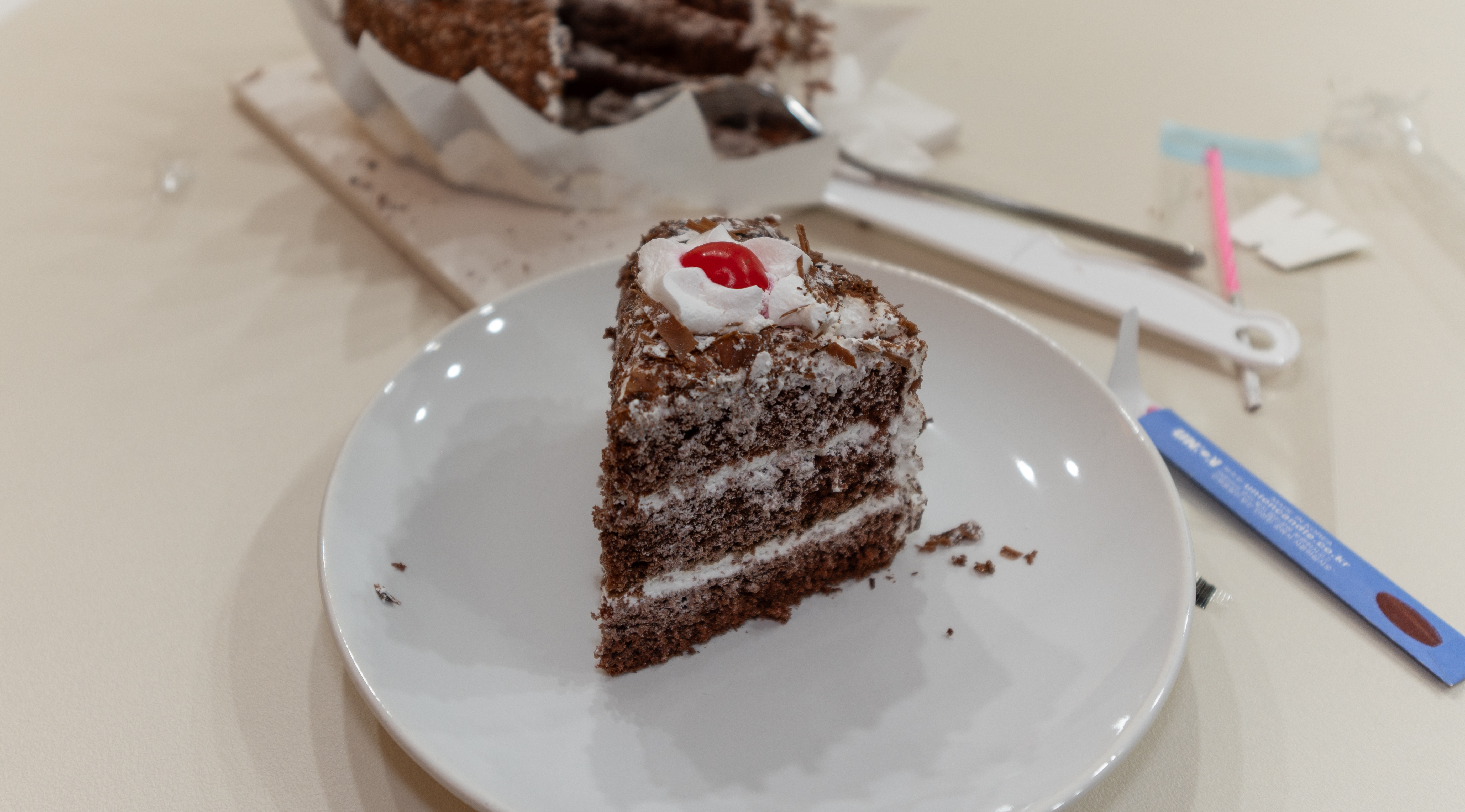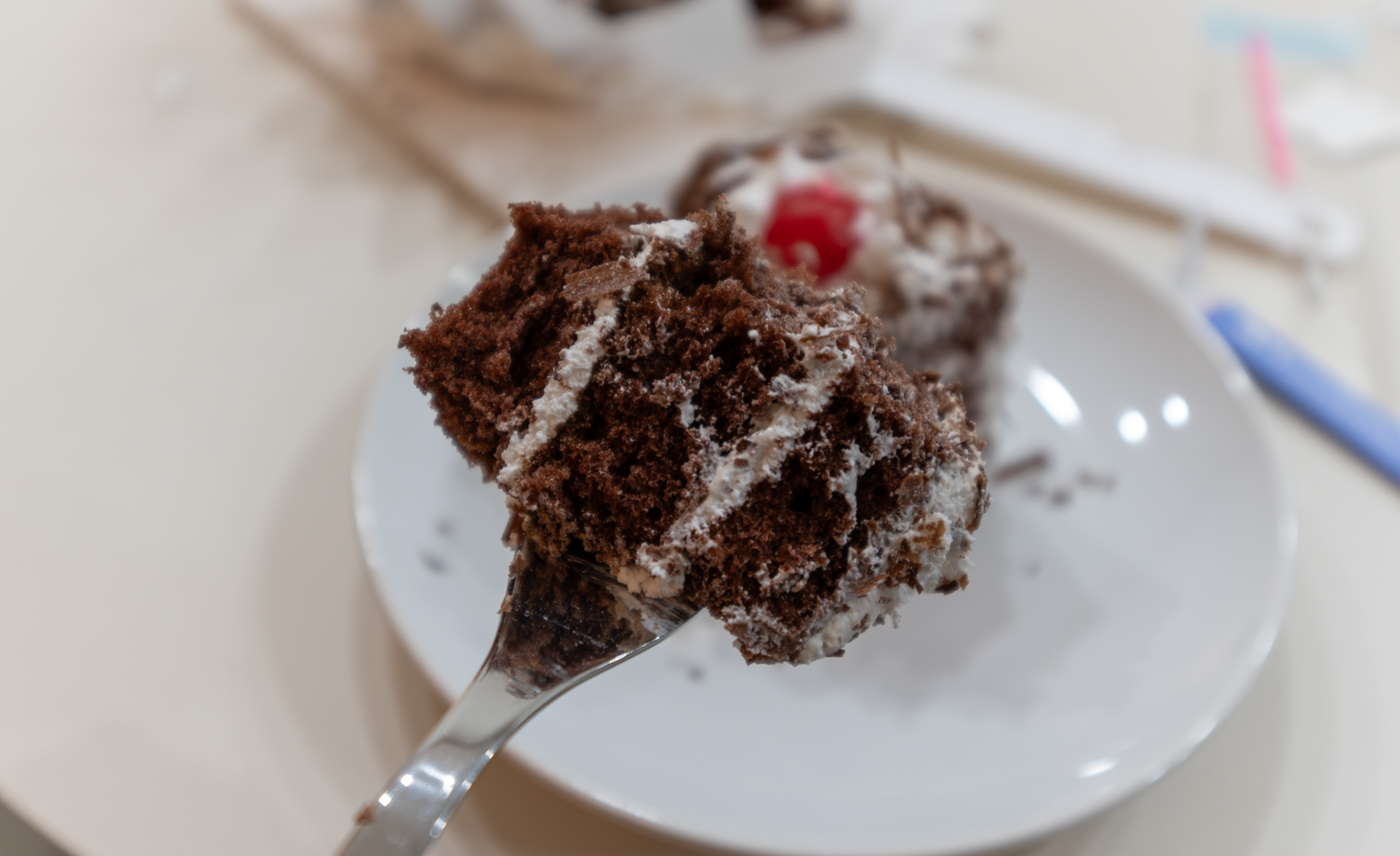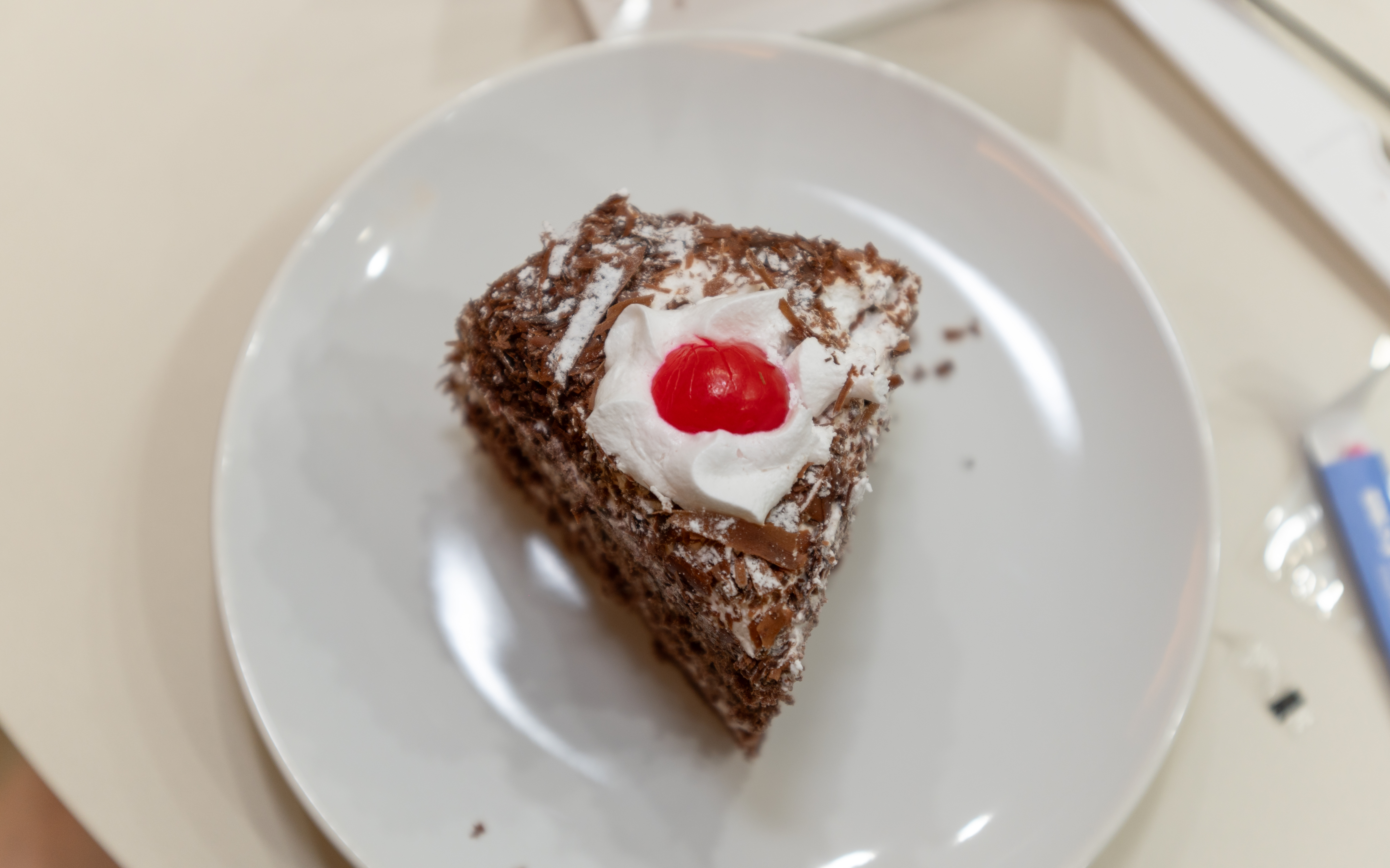 케이크를 먹기 위한 저만의 의식을(?) 조촐하게 치르고, 케이크를 먹어보았습니다. 보라돌이23님의 추천에 의해 구입한 케이크는 디저트를 썩 즐기지 않는 제 입맛을 사로잡는 부드러움과 달콤함이 있었습니다. 정확히 어떤 맛이었냐 하면 초코를 머금은 부드러운 케이크의 시트와 층층이 쌓아둔 생크림의 맛이 서로 상호 보완을 해줘 초코맛이 너무 강하지도 않았고, 너무 달콤하지도 않은 적당한 맛을 보여주었습니다. 화룡점정 체리까지 단 디저트를 선호하지 않는 제게도 거부감 없는 맛을 보여주었습니다. 특히 부드러운 맛의 케이크는 숙소에 있는 맥주와도 잘 어울렸습니다.
