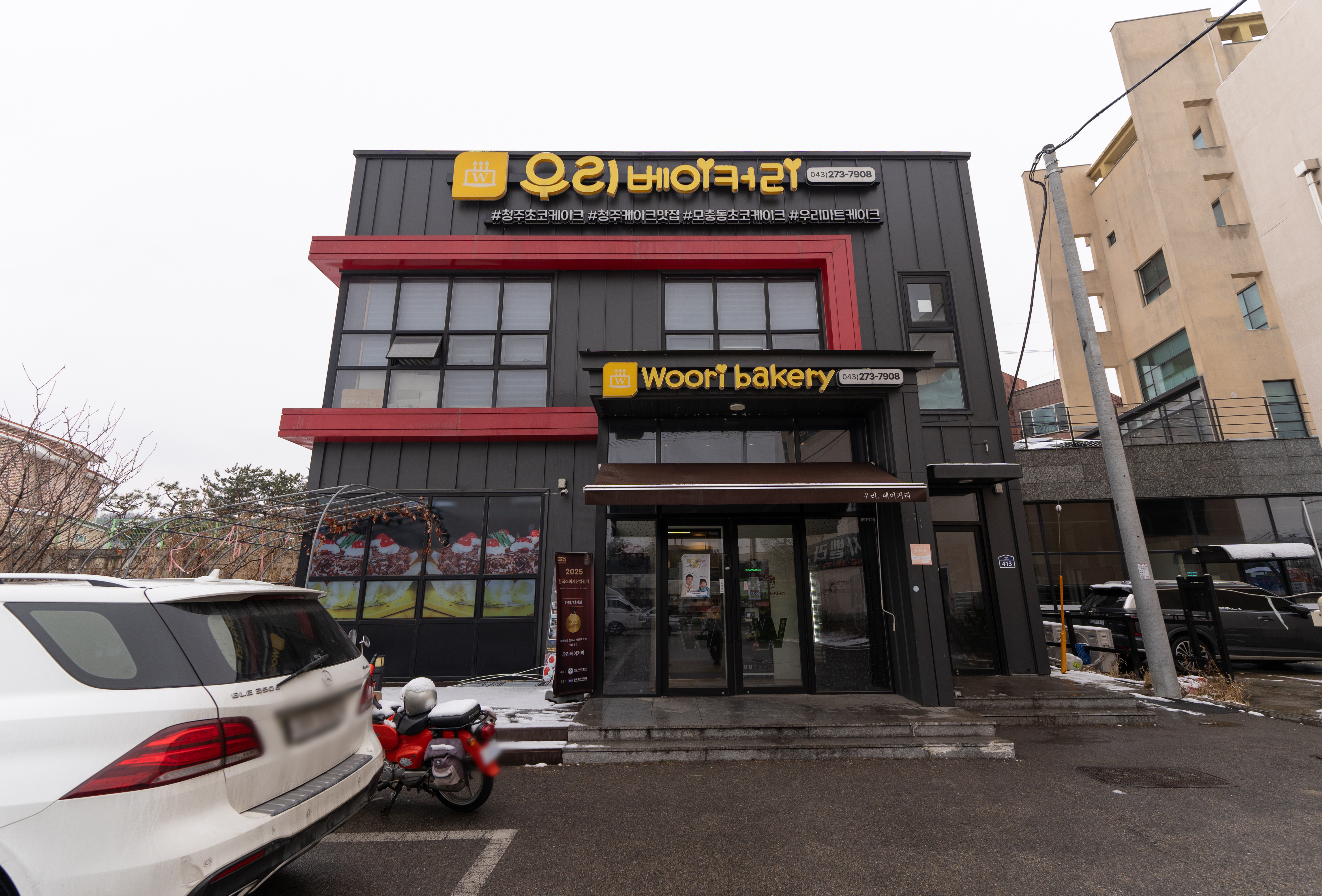 우리베이커리는 충북 청주시 서원구 죽림동 143-1 에 위치해 있었습니다. 건물을 2층 규모로 크지는 않았지만, 자체 건물에 주차장도 널찍해서 케이크나 빵 종류를 포장해서 가기에 좋은 가게였습니다.