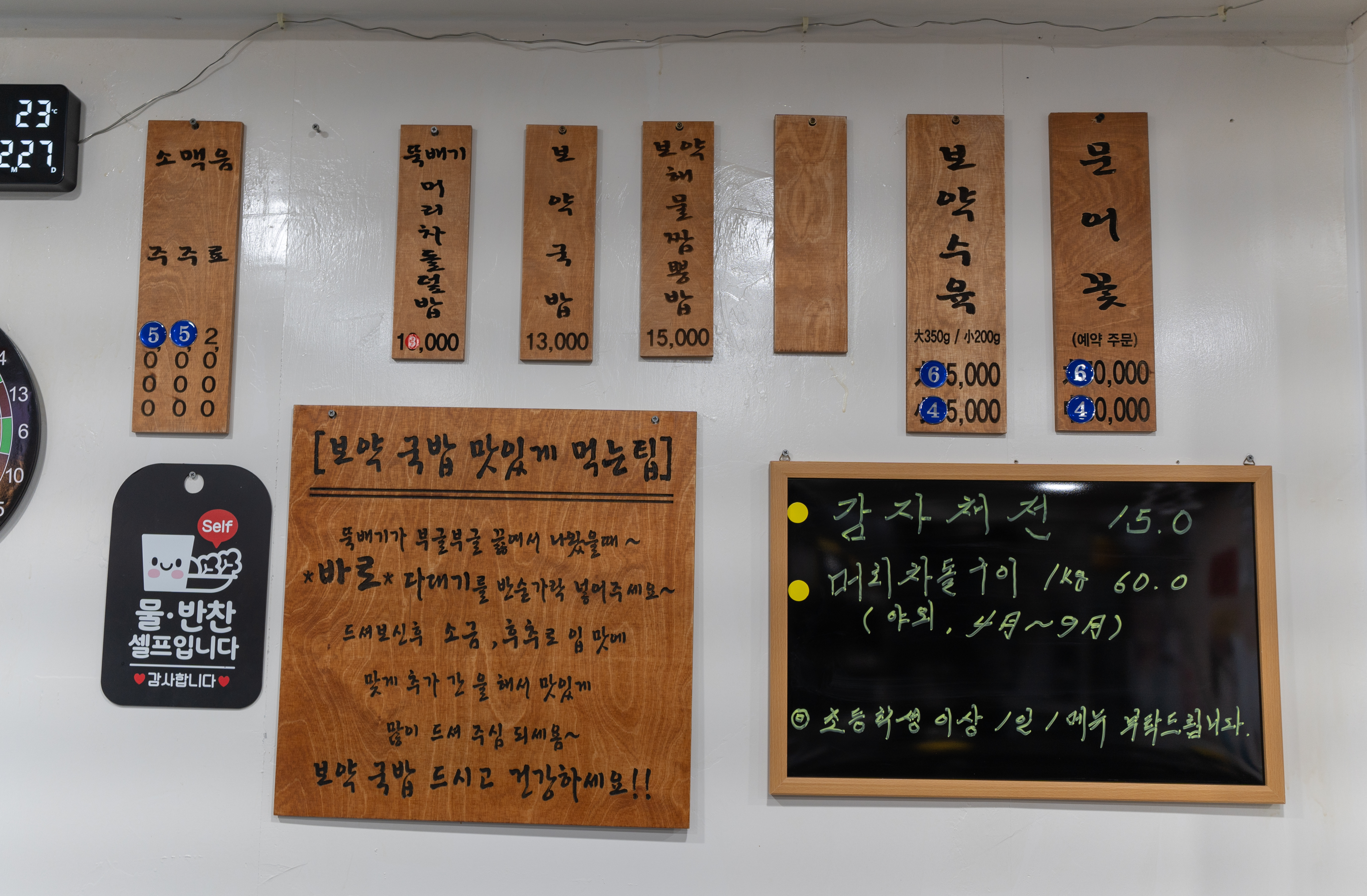 가게 분위기는 일반적인 음식점 분위기였고, 가게 벽면에는 유명인들이 다녀가셨는지 사인이 붙어있는 것을 볼 수 있었습니다. 저는 이재용이라는 배우와 유튜버 밥굽남 정도 알아볼 수 있었네요.