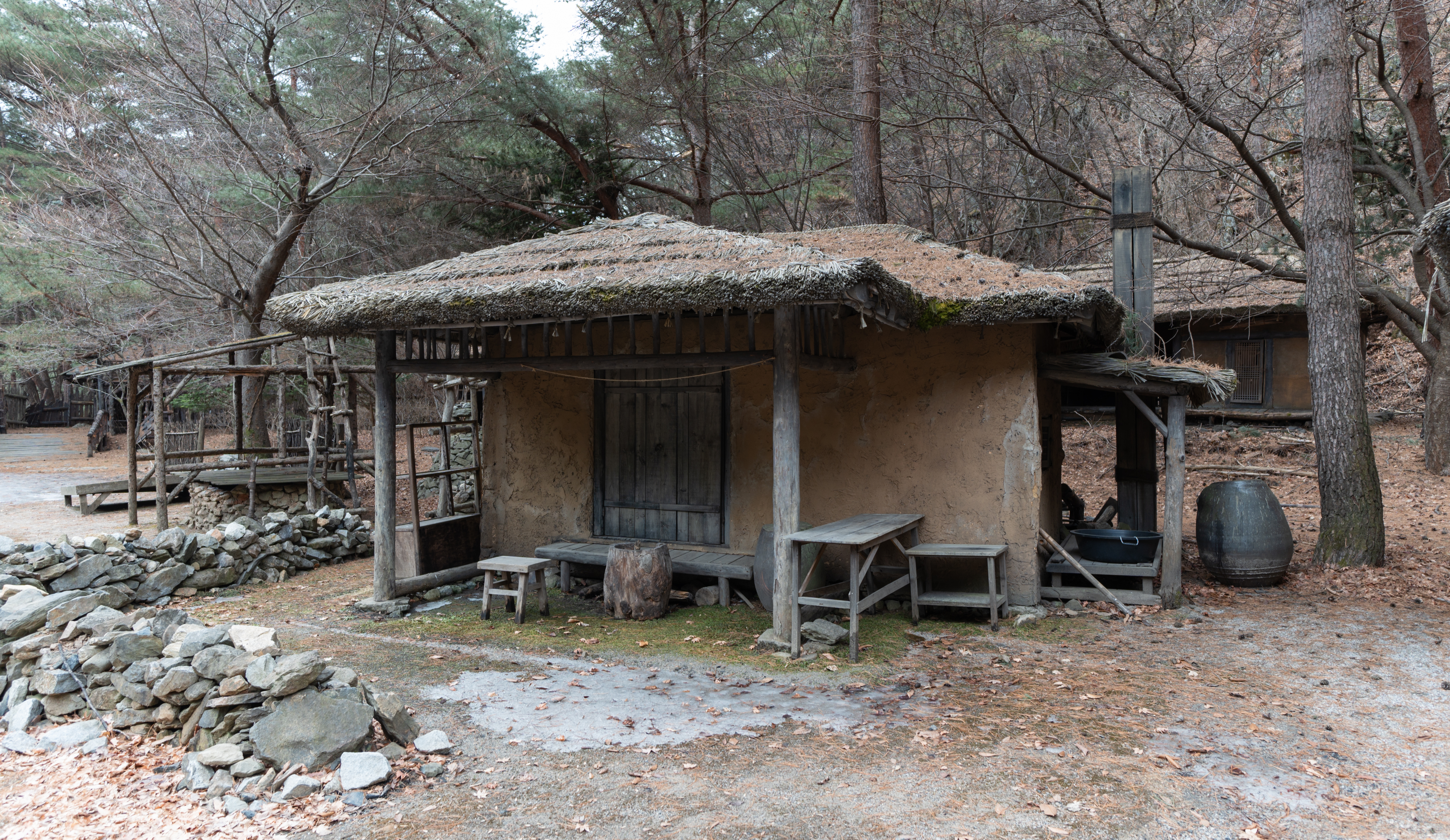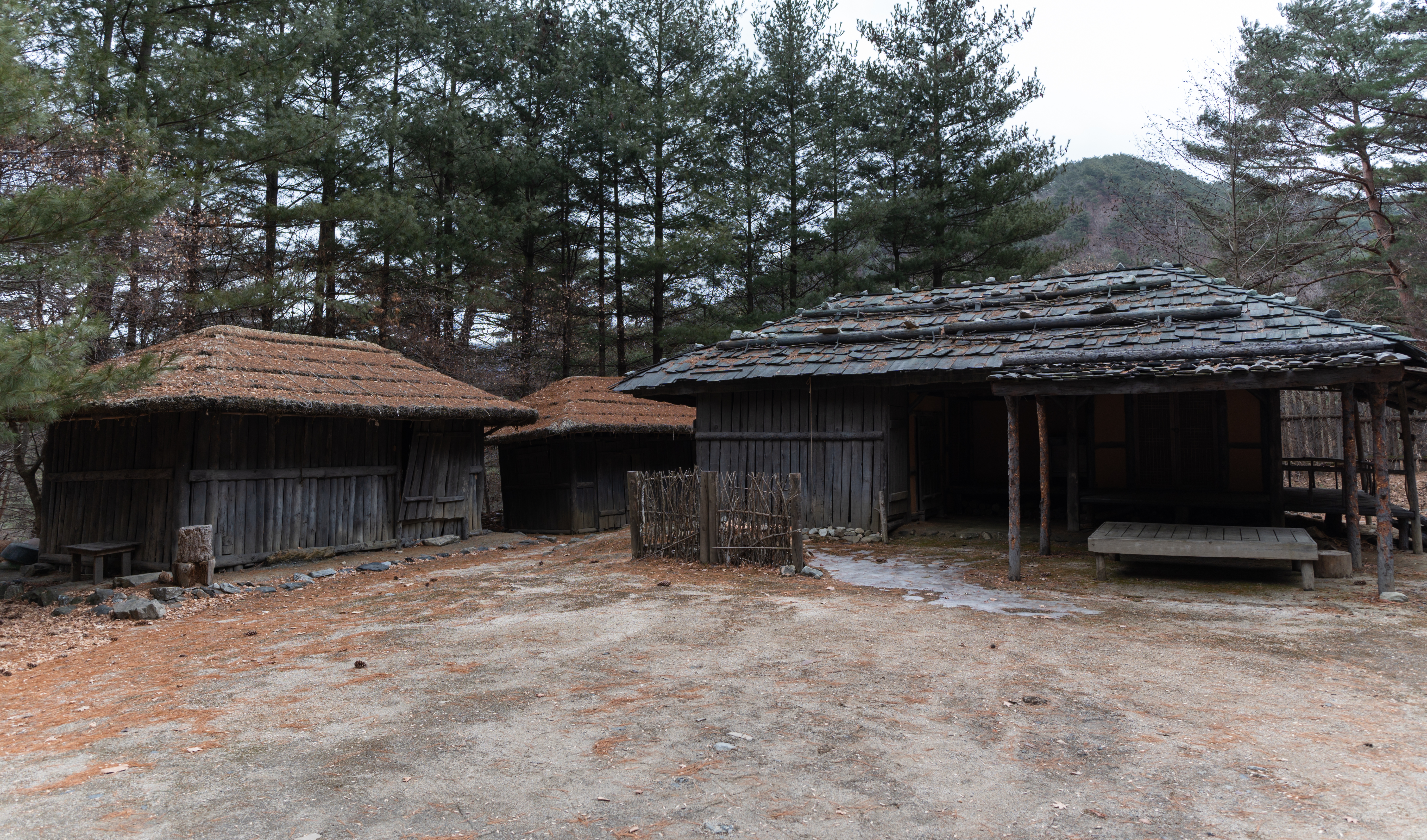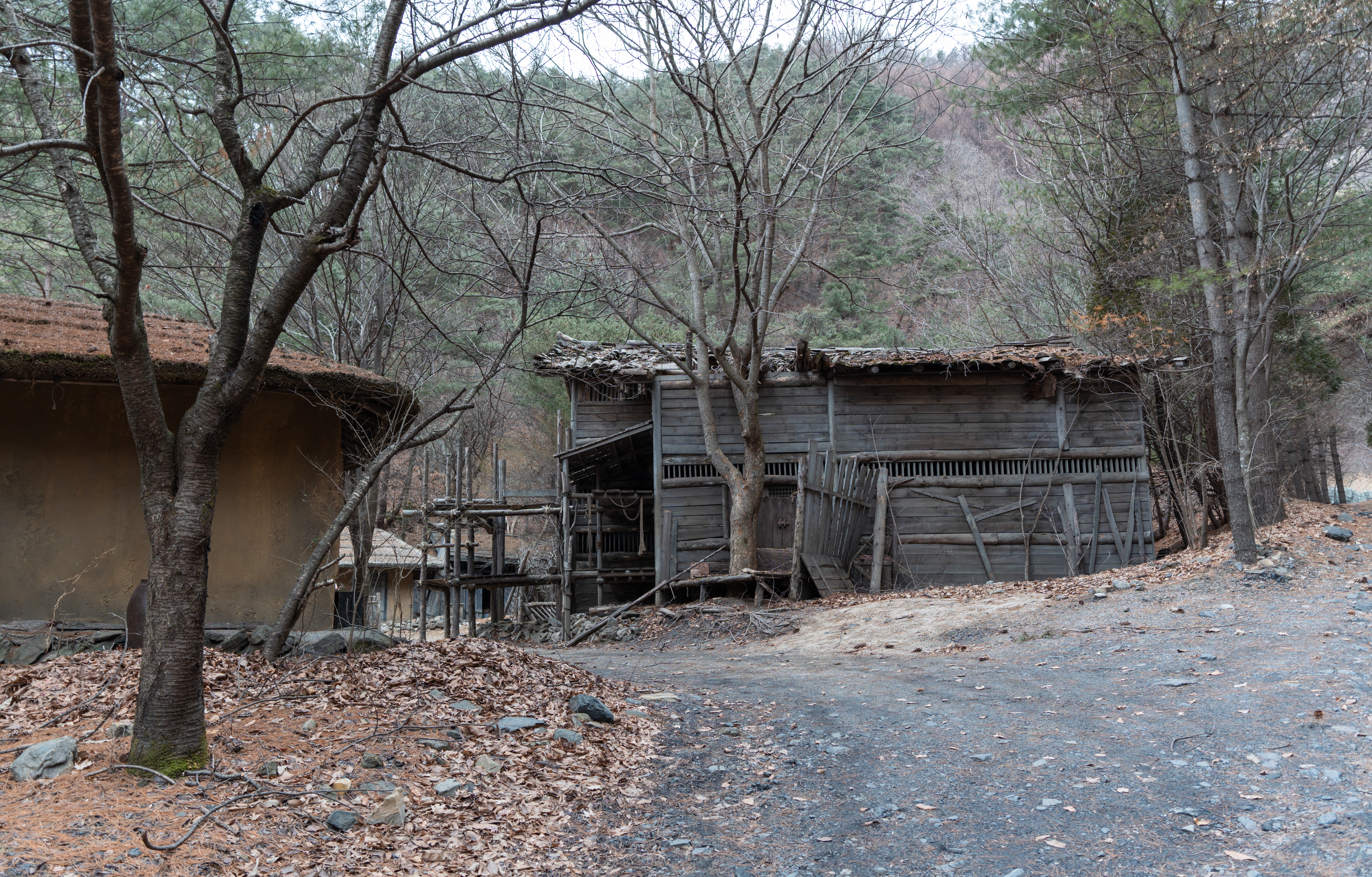 건물들은 실제로 사람들이 살던 터가 아니라 세트장이라 모양만 대충 흉내내놓았을 것 같았는데, 실제로 가보면 그래도 마루나 의자 같은데 잠깐 쉴 수도 있어 보이더라고요. 제가 간 날은 비가 막 내리기 전이라 하늘이 잔뜩 흐려서 1시간 내로 사진만 후다닥 찍고 내려가자는 입장이었는데, 진짜로 제가 촬영을 마치고 내려가니 비가 내리더라고요.