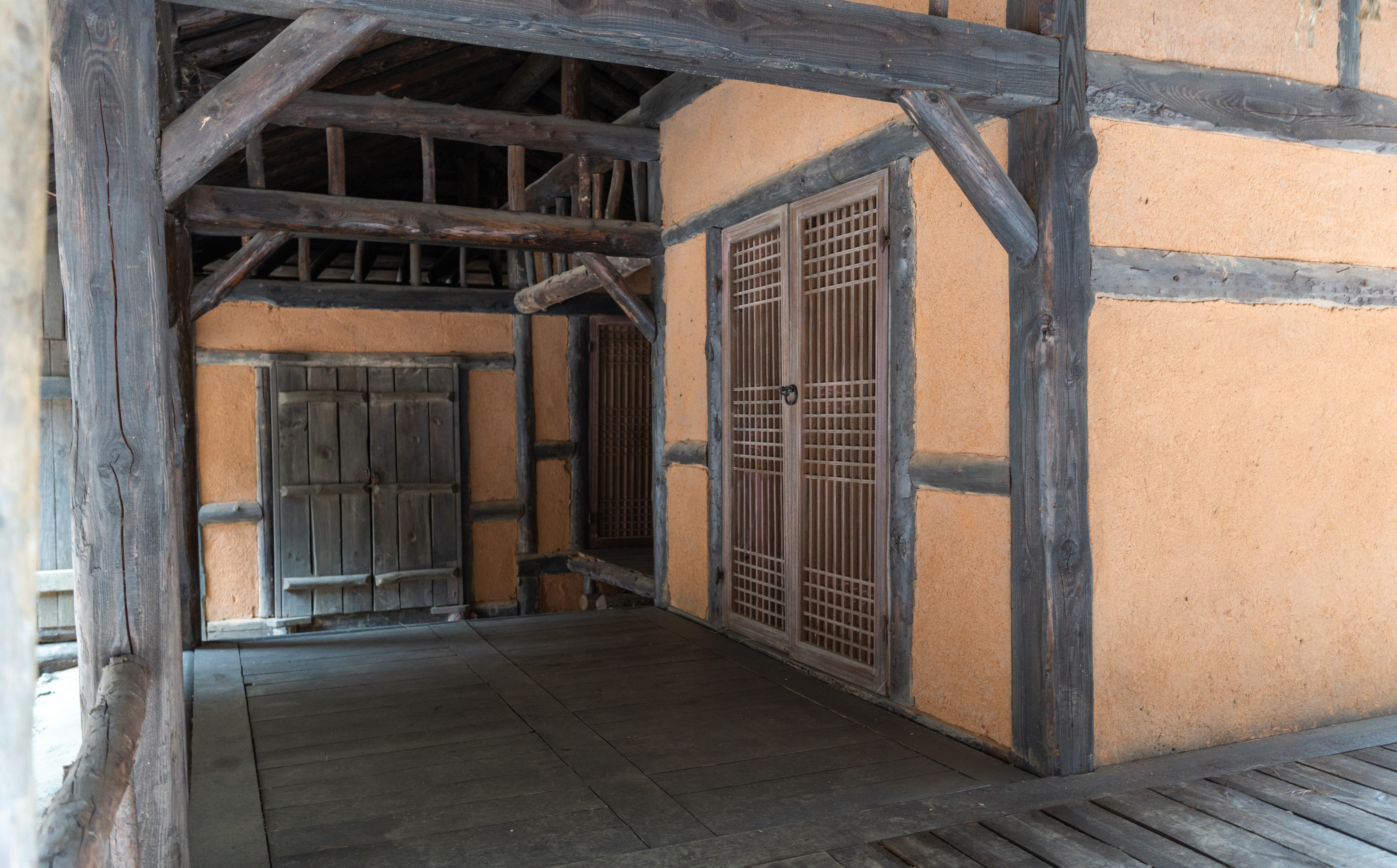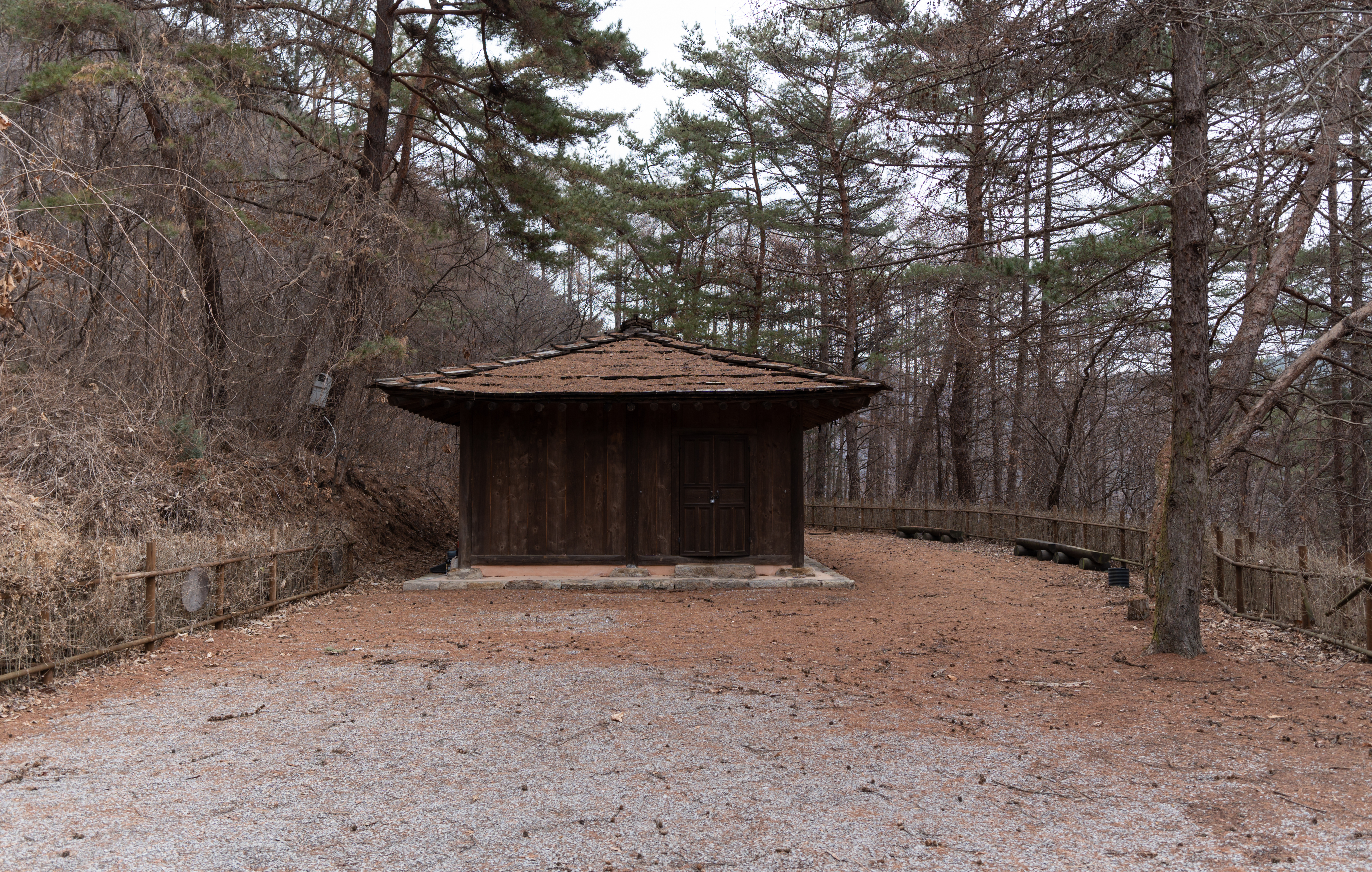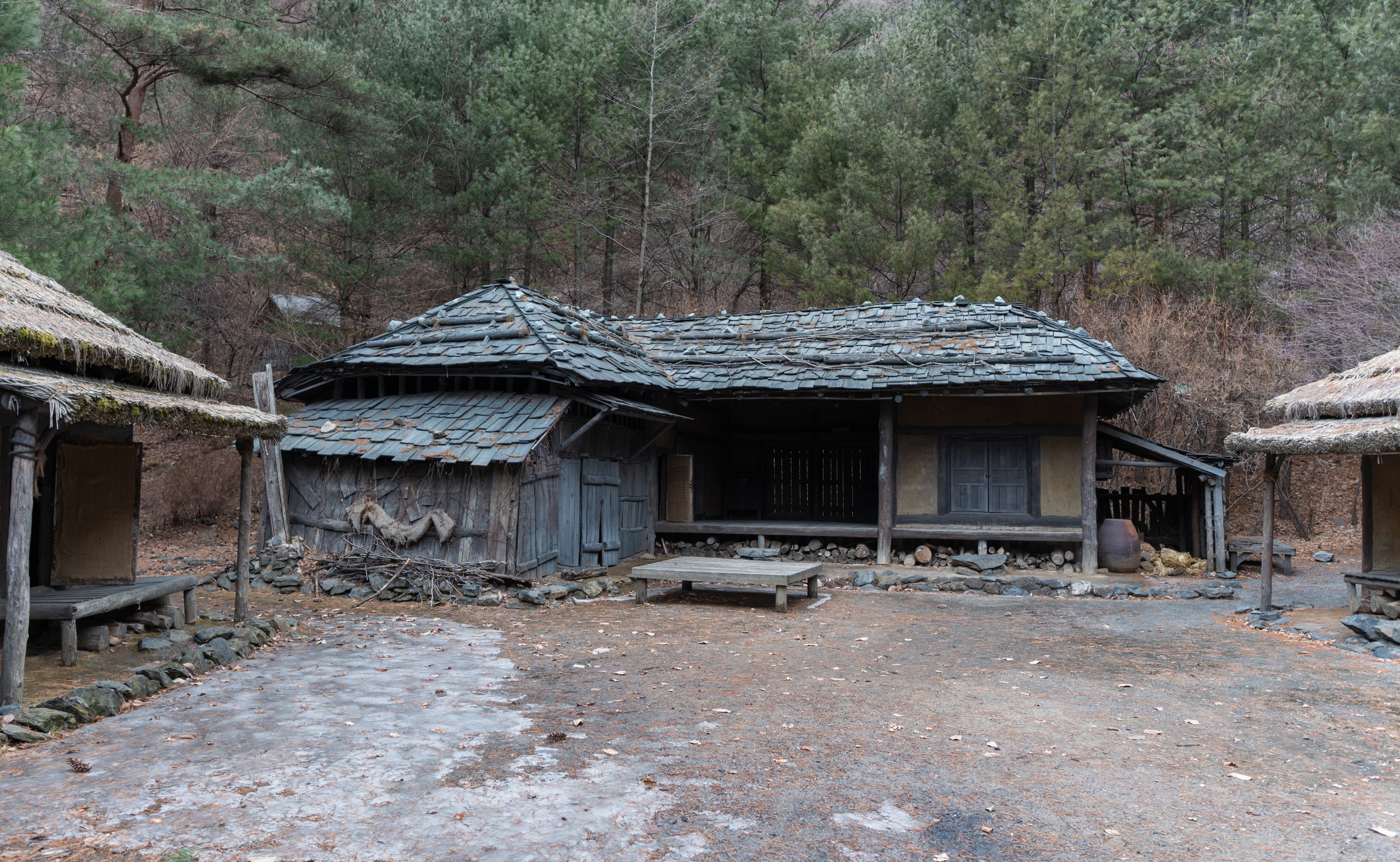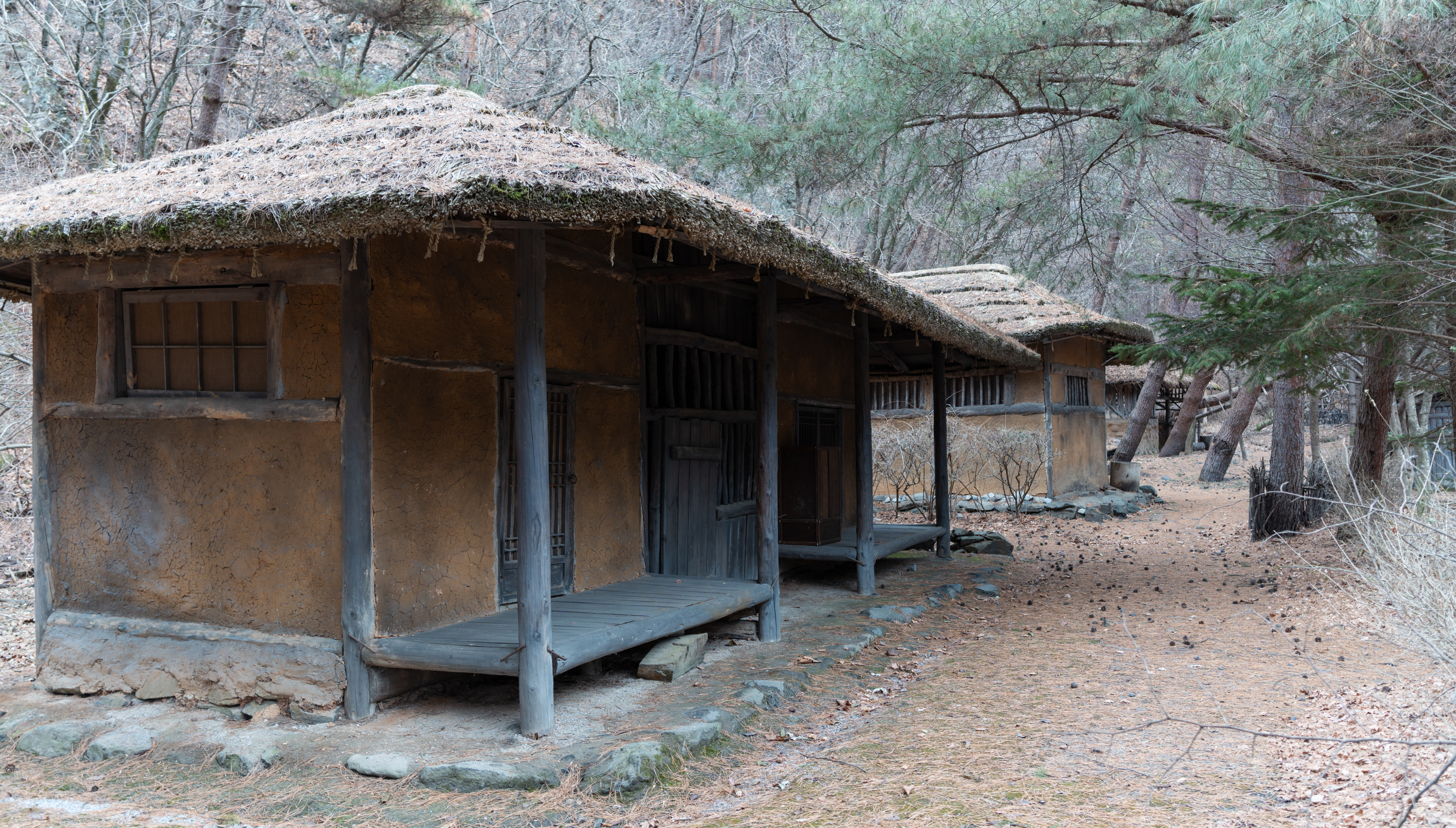 건물들은 실제로 사람들이 살던 터가 아니라 세트장이라 모양만 대충 흉내내놓았을 것 같았는데, 실제로 가보면 그래도 마루나 의자 같은데 잠깐 쉴 수도 있어 보이더라고요. 제가 간 날은 비가 막 내리기 전이라 하늘이 잔뜩 흐려서 1시간 내로 사진만 후다닥 찍고 내려가자는 입장이었는데, 진짜로 제가 촬영을 마치고 내려가니 비가 내리더라고요.