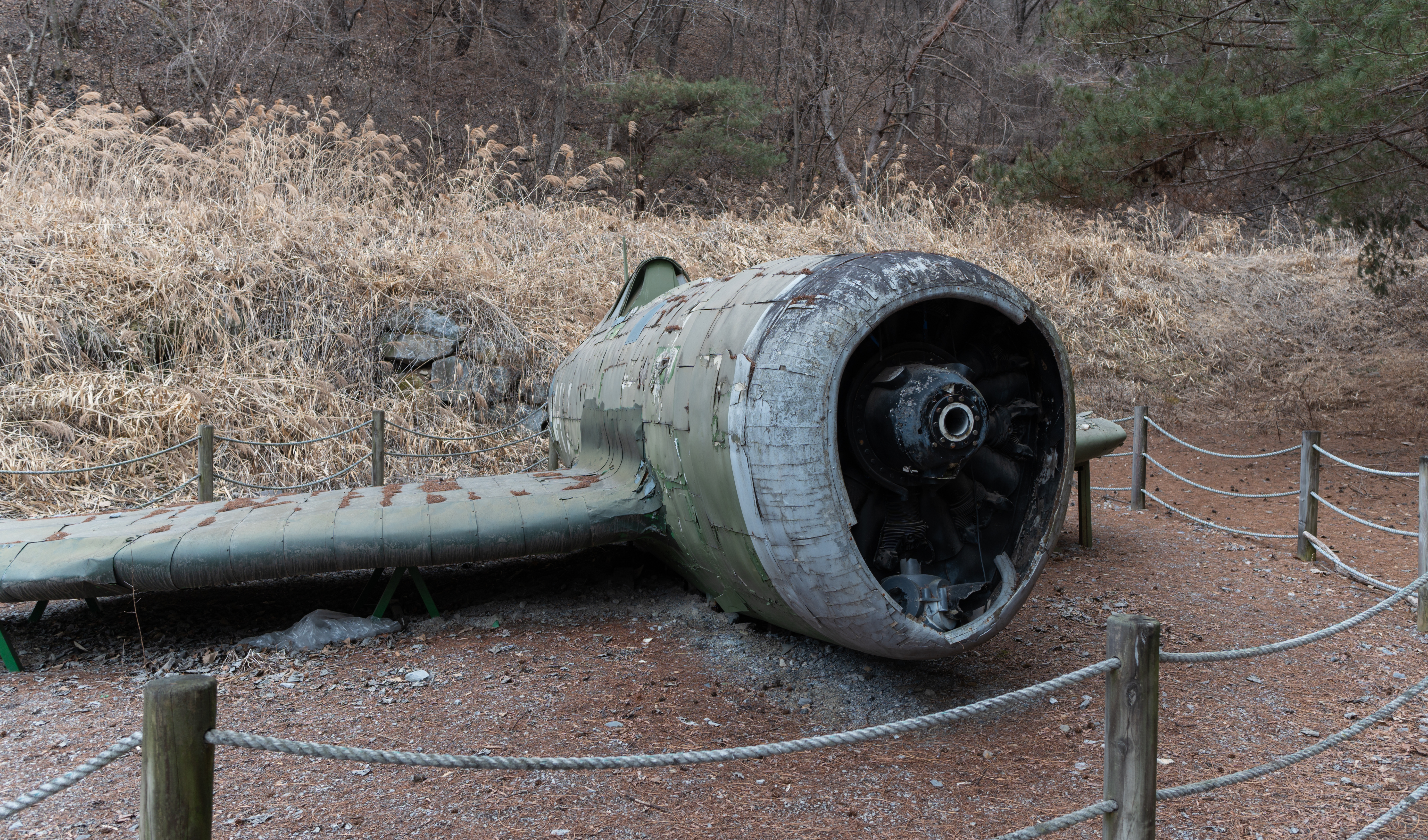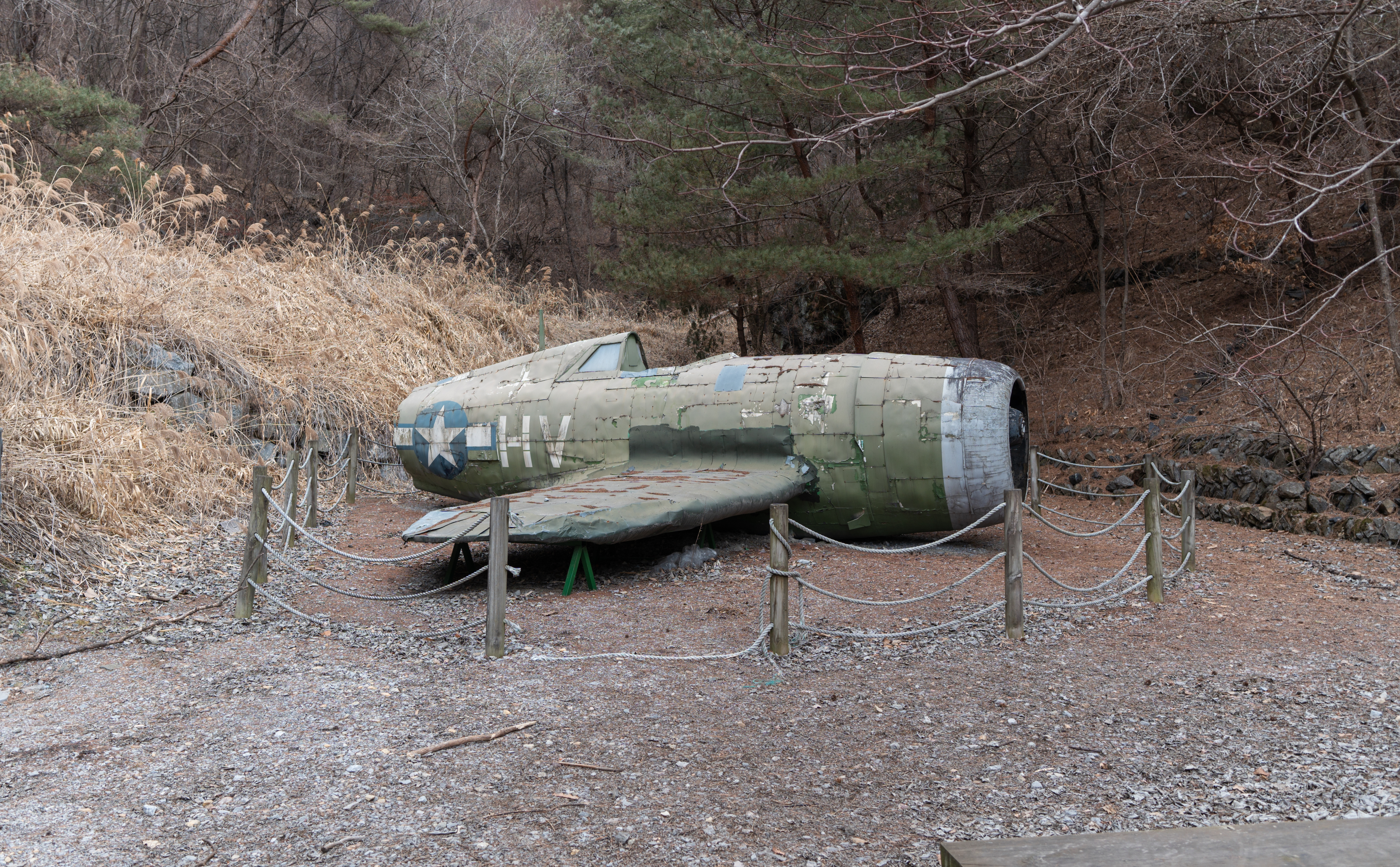 언덕을 오르니 추락한 비행기 모형도 있고, 들어가 볼 수는 없었지만 동굴도 있었습니다. 한쪽으로 가보니 교회 건물도 있었는데, 지인들에게 보내니 무섭다고들 하시던데, 저는 별 생각이 없어서 막혀있는 창문 틈으로 뭐가 있나 들여다보았네요. 막상 안쪽에는 낡은 가구 몇 개 있었는데, 이제 점점 공기조차도 습해지기 시작해서 기념사진 하나 얼른 찍고 내려왔습니다.