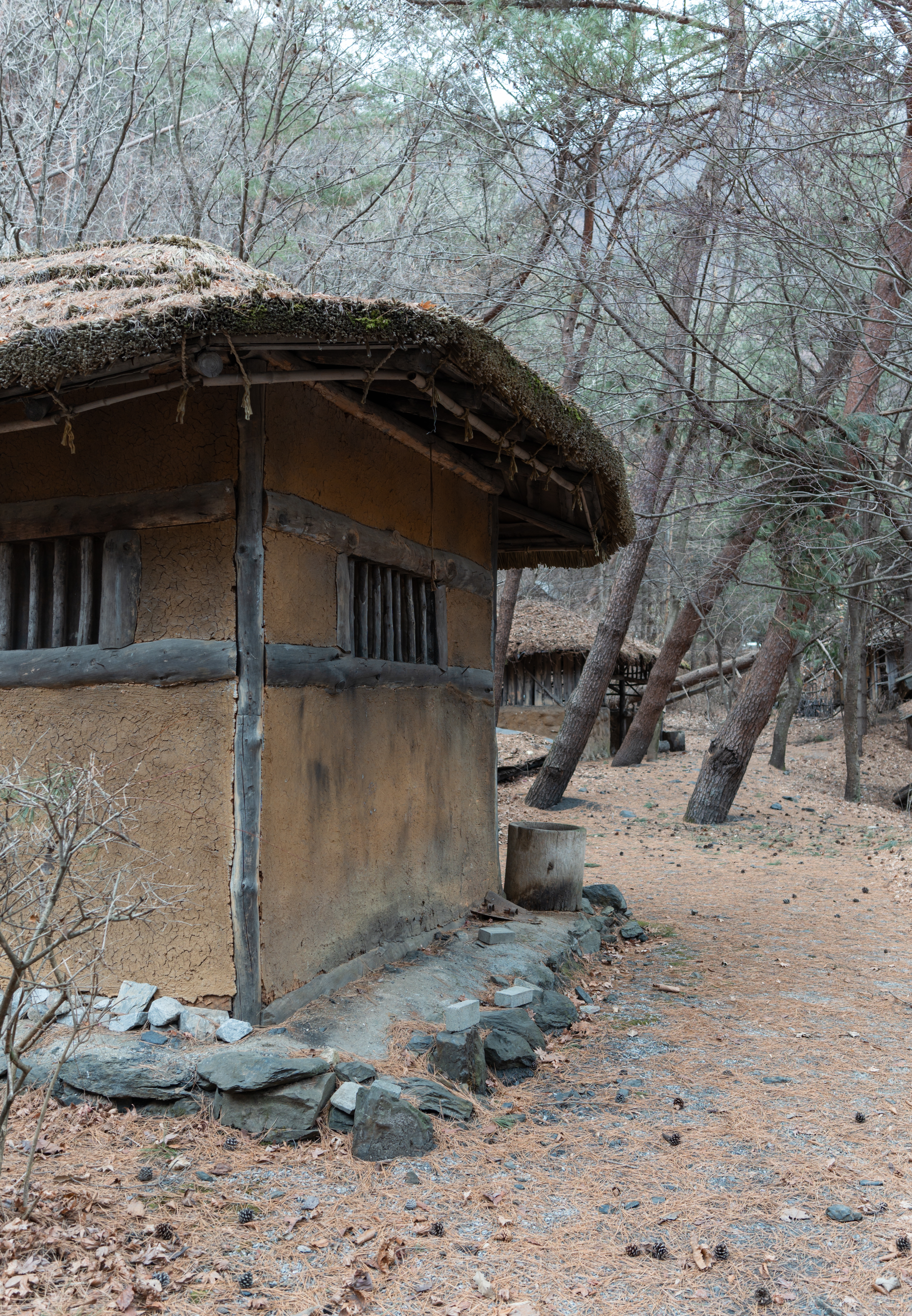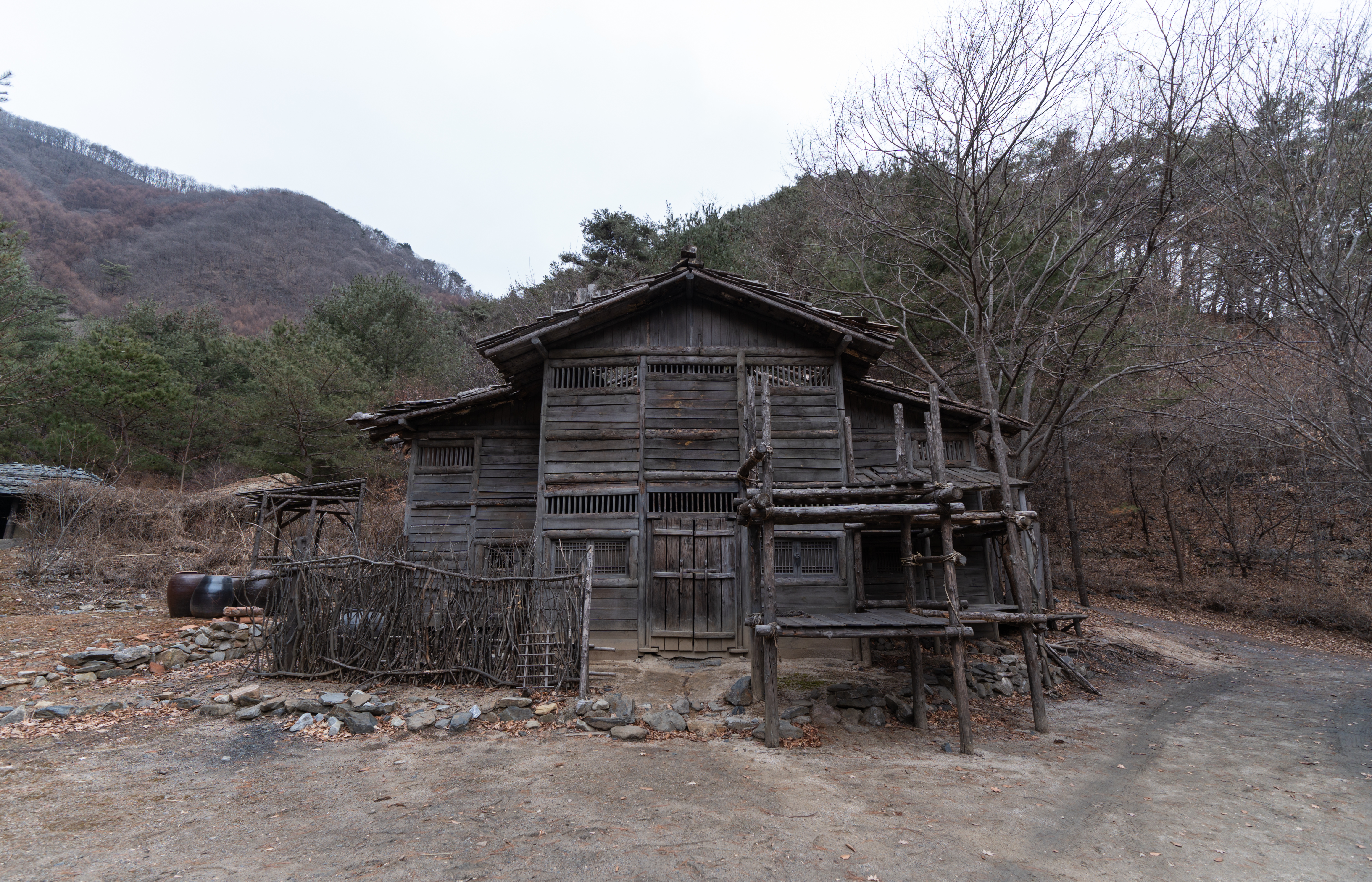 건물들은 실제로 사람들이 살던 터가 아니라 세트장이라 모양만 대충 흉내내놓았을 것 같았는데, 실제로 가보면 그래도 마루나 의자 같은데 잠깐 쉴 수도 있어 보이더라고요. 제가 간 날은 비가 막 내리기 전이라 하늘이 잔뜩 흐려서 1시간 내로 사진만 후다닥 찍고 내려가자는 입장이었는데, 진짜로 제가 촬영을 마치고 내려가니 비가 내리더라고요.