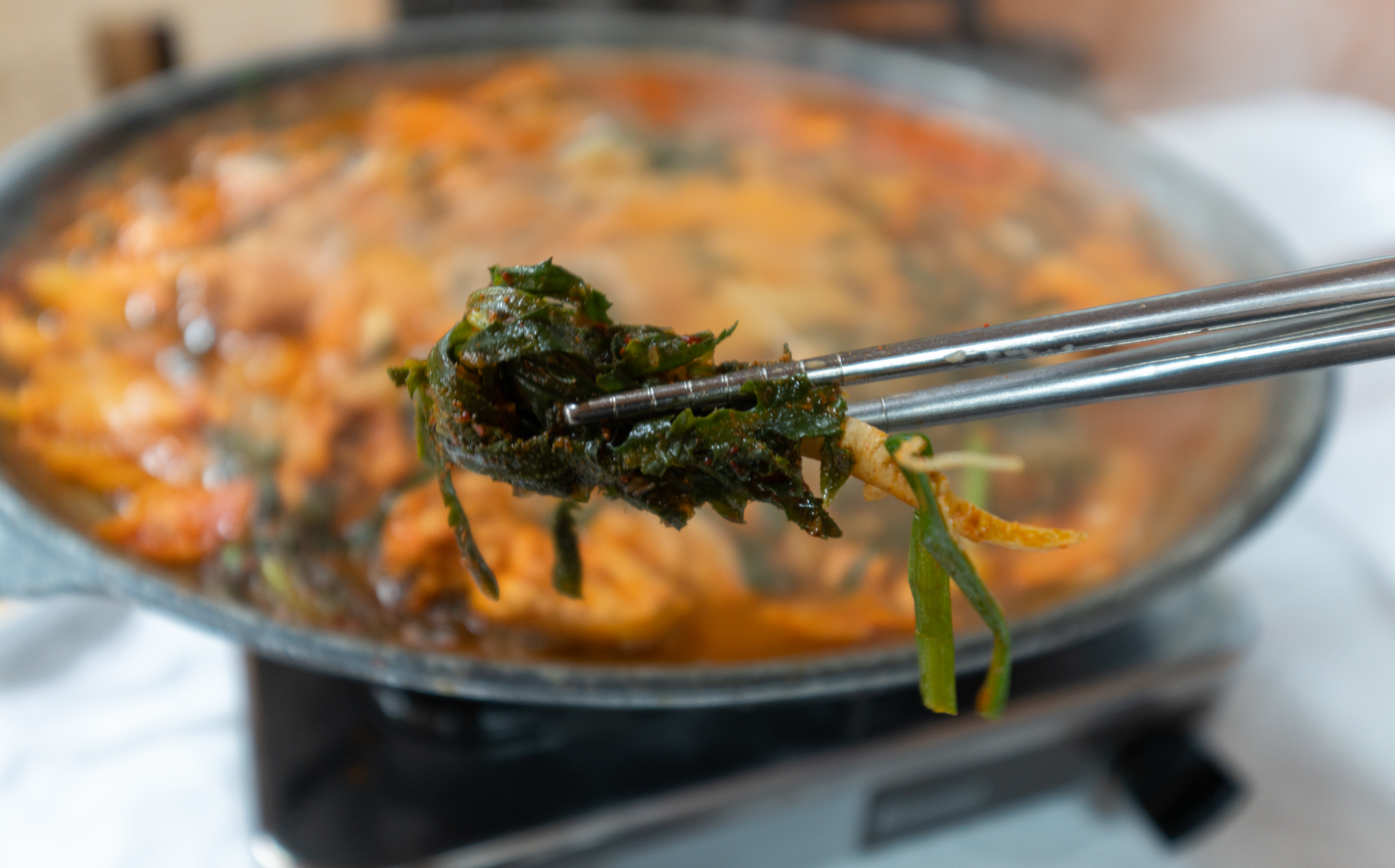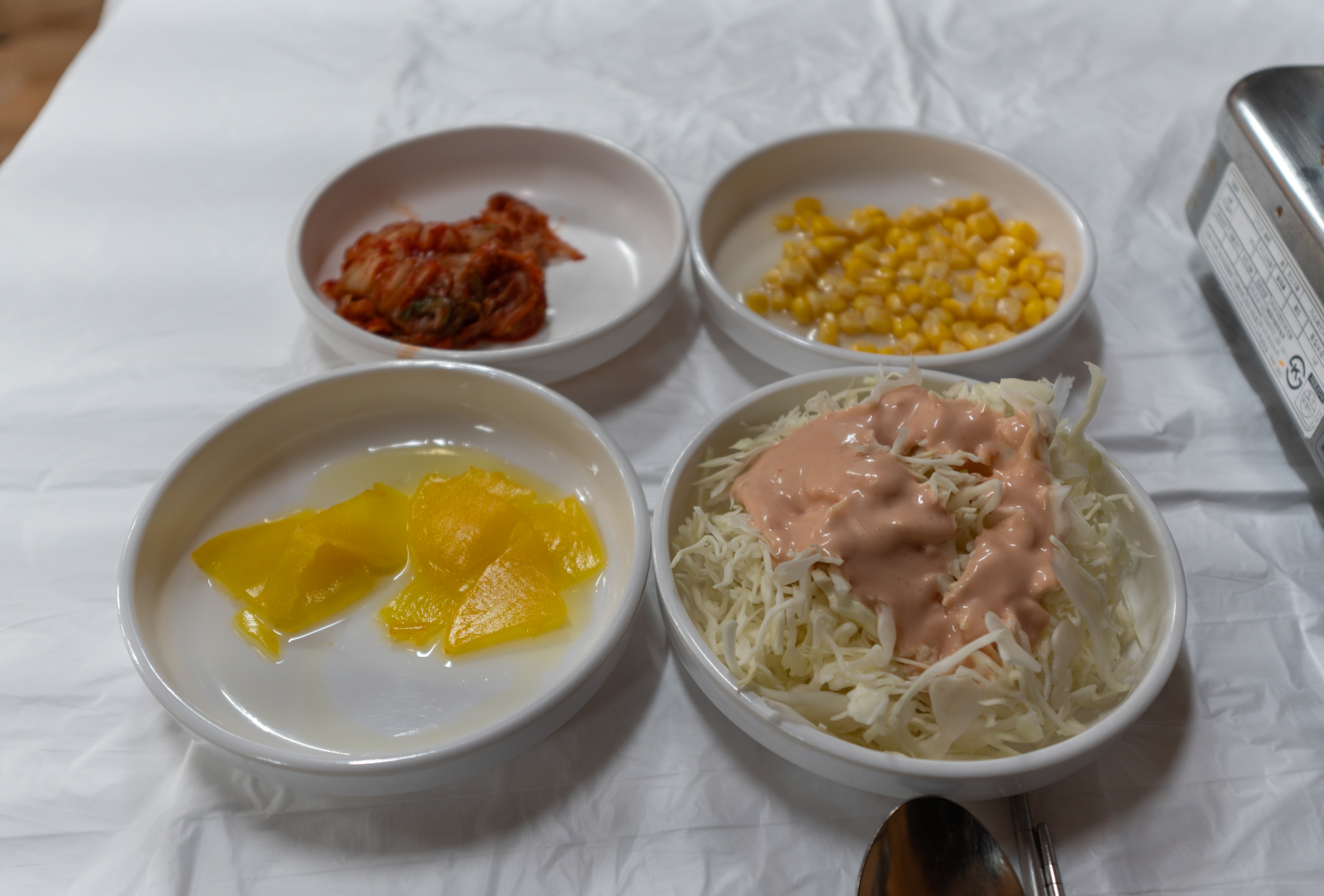 태백닭갈비는 위와 같이 냉이가 듬뿍 올라간 닭갈비에 반찬으로 옥수수콘, 양배추샐러드, 단무지, 배추김치가 나왔습니다. 제가 냉이나 달래 된장국을 좋아하는데, 봄향기 가득한 냉이를 수북이 쌓아주니 너무 좋더라고요. 부족하다 싶을 경우 3,000원 추가하면 닭갈비 냄비 위로 국물이 보이지 않을 정도록 냉이를 쌓아주시더라고요.
