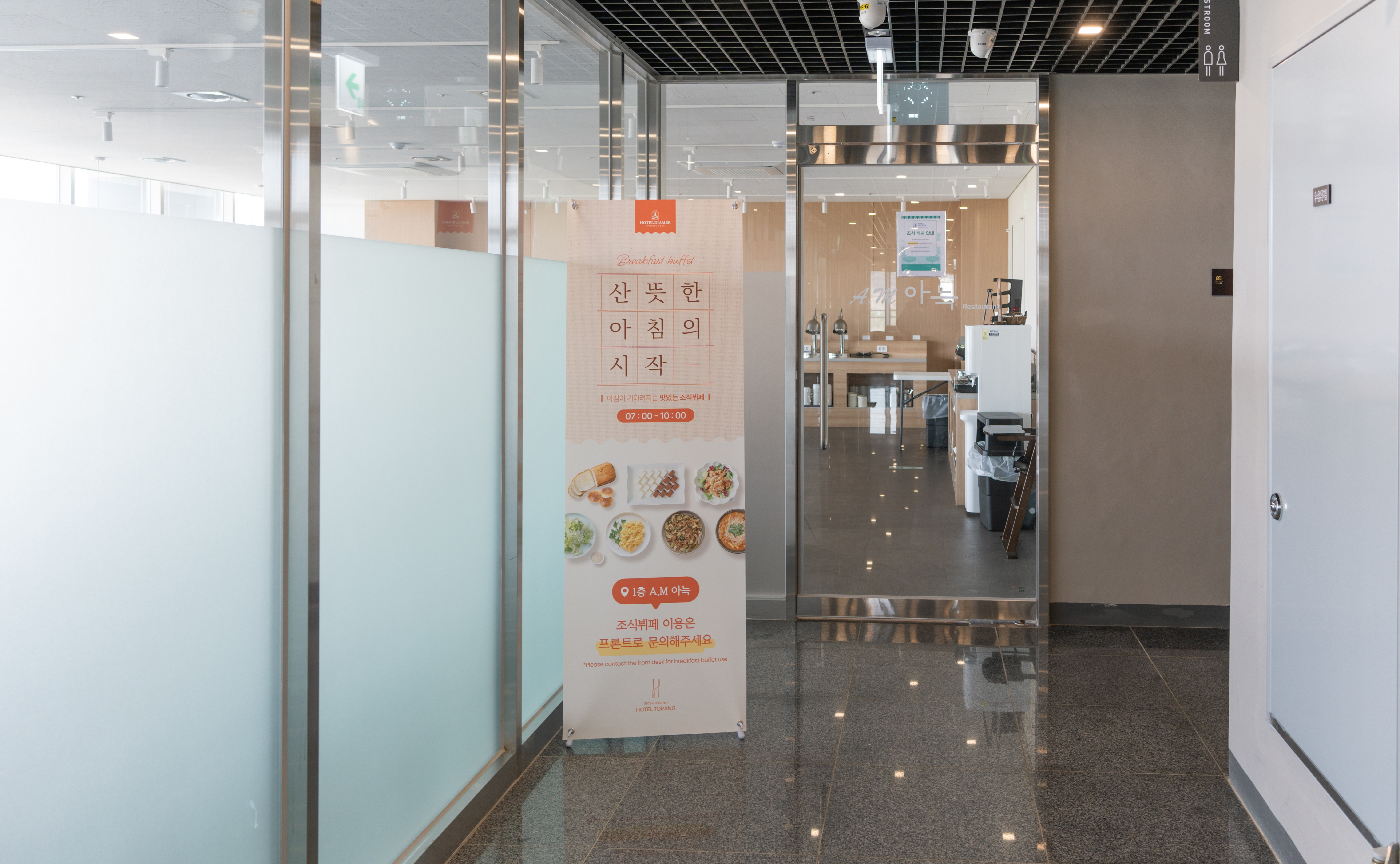 1층에는 유아들을 위한 놀이시설이 있었고, 조식뷔페 이용을 위한 식당이 마련되어 있었습니다. 한쪽에 화장실도 있어서 편리하게 이용할 수 있었습니다. 지하 1층에는 짐보관함과 GS25 편의점이 있어서 여행 중 짐을 맡기거나, 간단한 음식이나 생필품을 구입할 수도 있었습니다. 이제 객실로 향해 보실까요?