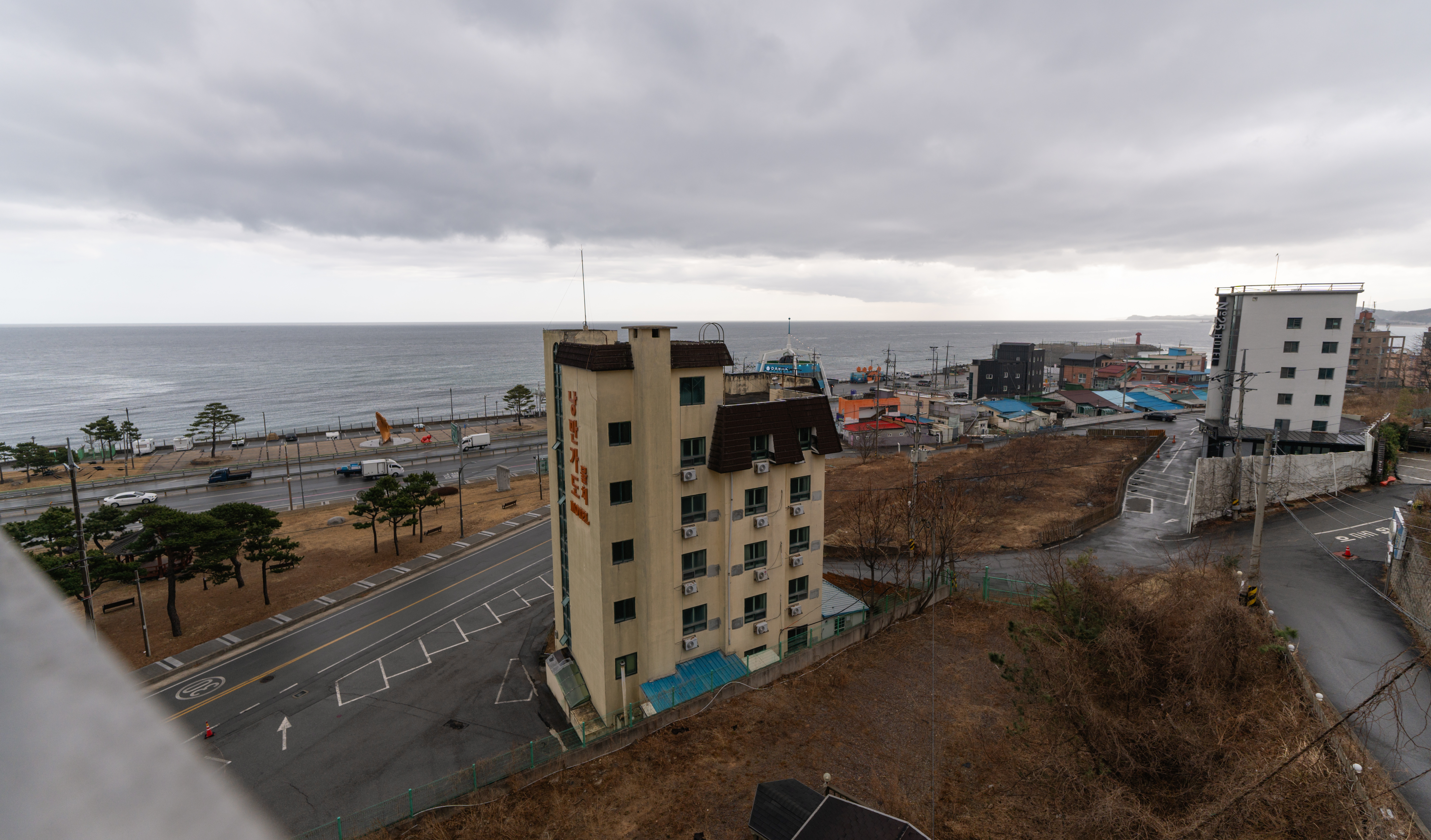 다이아메르호텔 속초 by 아늑 스테이의 하프오션뷰 객실의 전망입니다. 저는 첫날 입실 시간이 거의 자정에 가까워서 뷰가 거의 없는 하프 오션뷰를 선택했는데, 건물에 많이 가리는 뷰가 살짝 아쉽더라고요. 그래서 둘째 날은 기본적인 오션뷰를 선택했습니다.