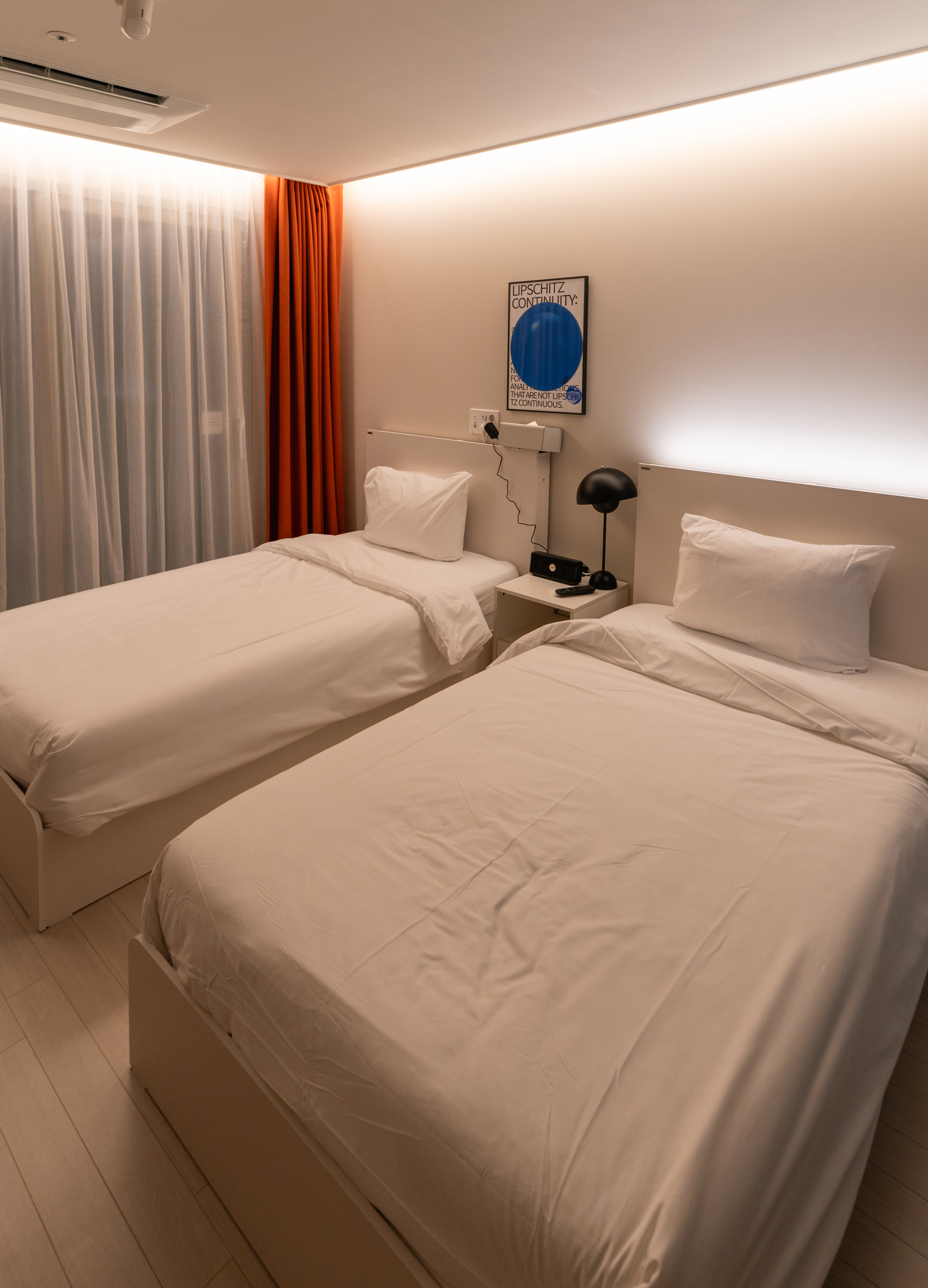 스탠다드 트윈 형태의 침실은 구성은 비슷했는데, 침대의 조건이 살짝 달랐습니다. 스탠다드 객실의 경우 더블베드로 큰 사이즈가 제공된 반면 트윈 객실은 싱글베드 2개로 저는 다음에 다시 찾는다면 더 넓은 침대가 있는 스탠다드 객실을 선택할 것 같습니다.