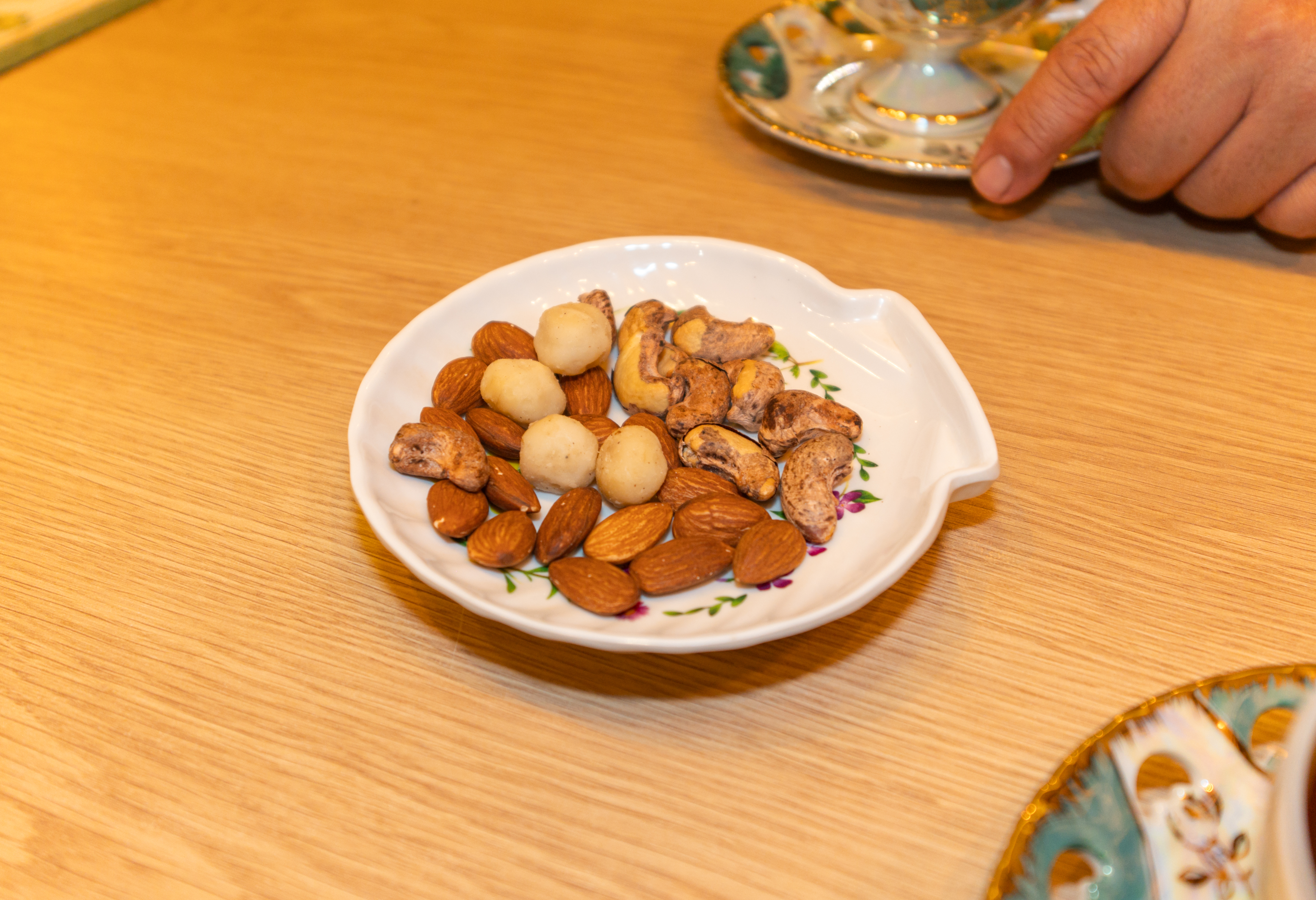 저희는 핸드드립 커피를 마셨습니다. 커피에는 아몬드와 캐슈넛, 마카다미아 같은 너트류를 간식으로 같이 제공해 주셨습니다. 사장님이 말씀하시기를 커피와 견과류가 잘 어울려서 이렇게 서비스하고 있다고 하시더라고요.