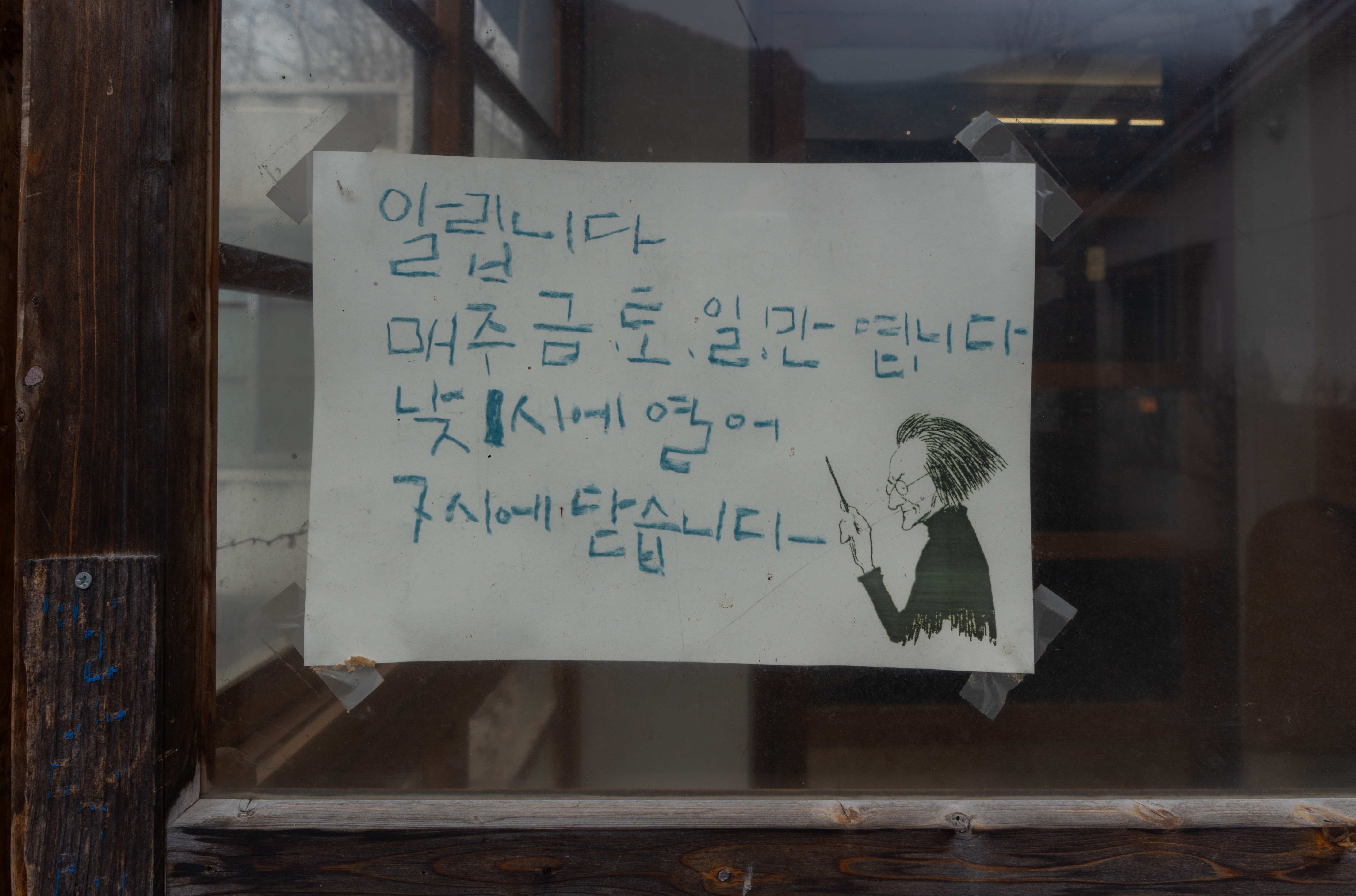 이화에월백하고 카페는 강원특별자치도 평창군 평창읍 고길천로 859 에 위치해 있었습니다. 이화에월백하고 카페를 내비게이션을 찍고 찾아갔지만, 아무래도 인적이 드문 산속 깊이 위치해 있다 보니 중간에 "왠지 불안해지는 지점에서 300m 직진하시오." 라는 안내문도 세워져 있더라고요.