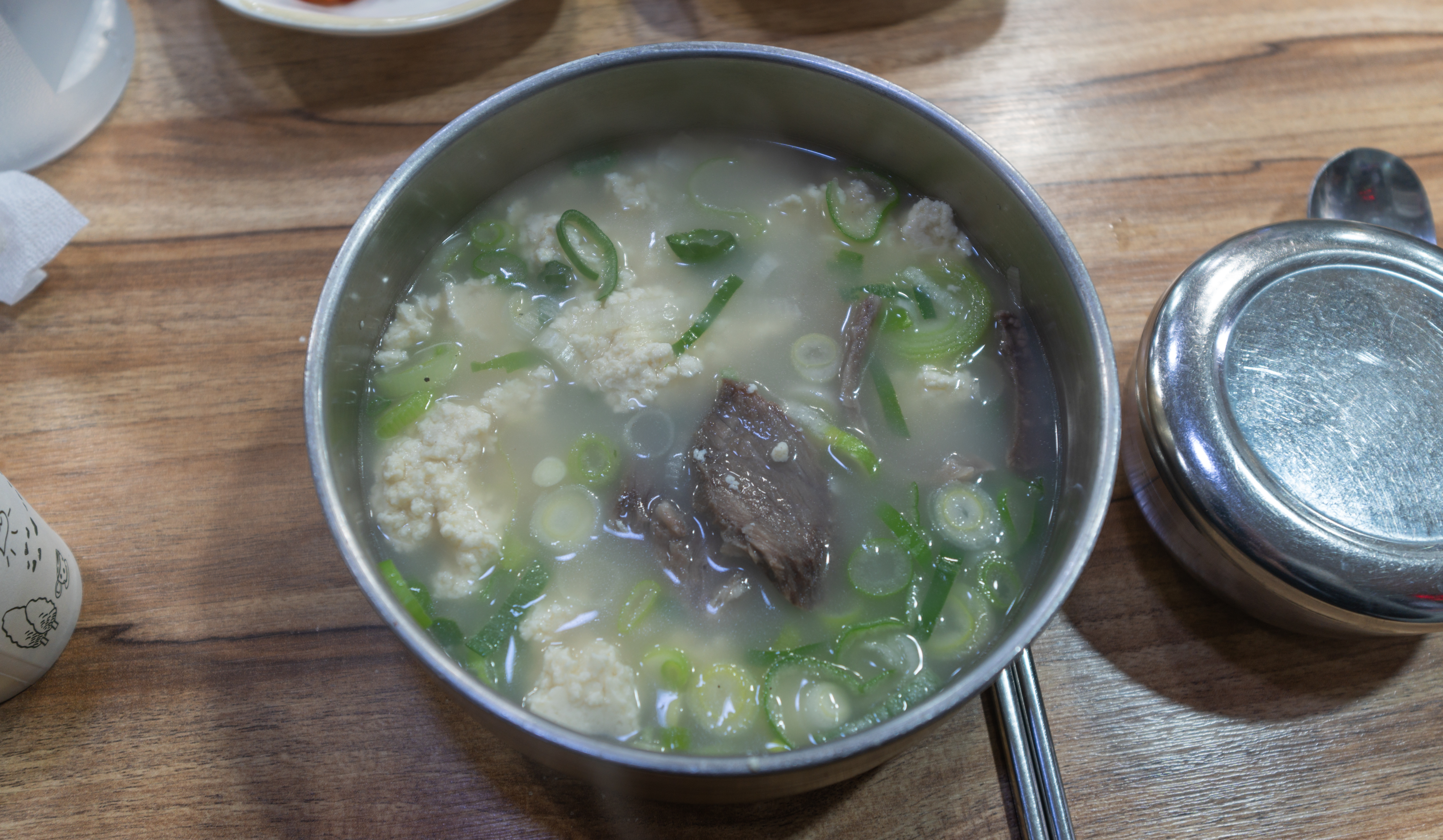 강릉 중앙시장 광덕식당은 맑은 순두부찌개와 소머리 국밥이 합쳐진 듯한 메뉴였는데요, 꽤 두툼하게 썰어내는 소머리 수육에 몽글몽글 순두부도 꽤 많이 들어가 맛이 좋았습니다. 저는 개인적으로 곤지암을 지나갈 때면 소머리국밥 가게를 꼭 들릴만큼 소머리국밥도 좋아하고, 순두부찌개도 즐겨 먹는데요. 순두부로 유명한 강릉의 몽글몽글한 순두부와 쫀득하고 고소한 소머리수육 둘 다 맛볼 수 있는 이 메뉴는 생각보다 만족감 있게 식사할 수 있었습니다.