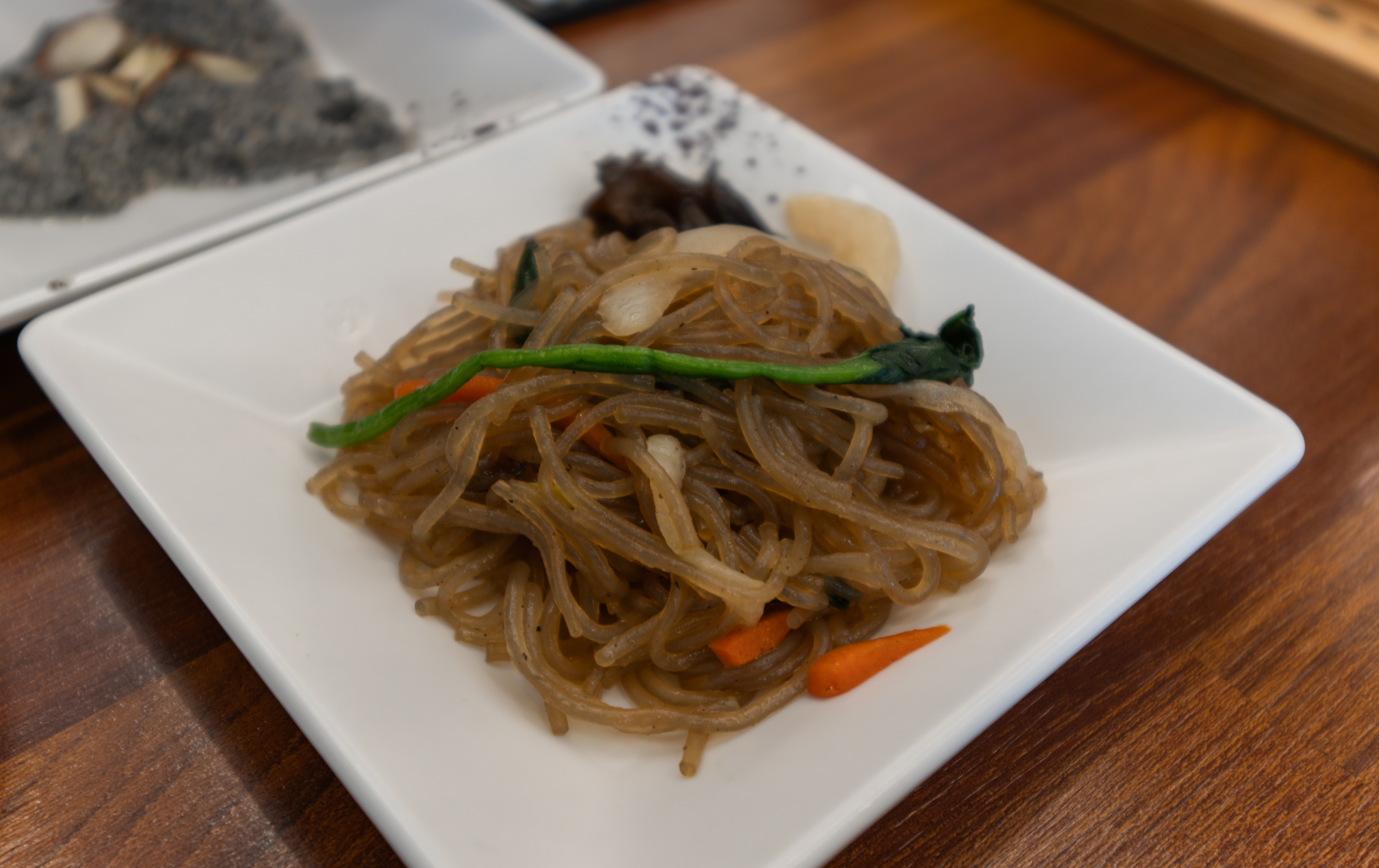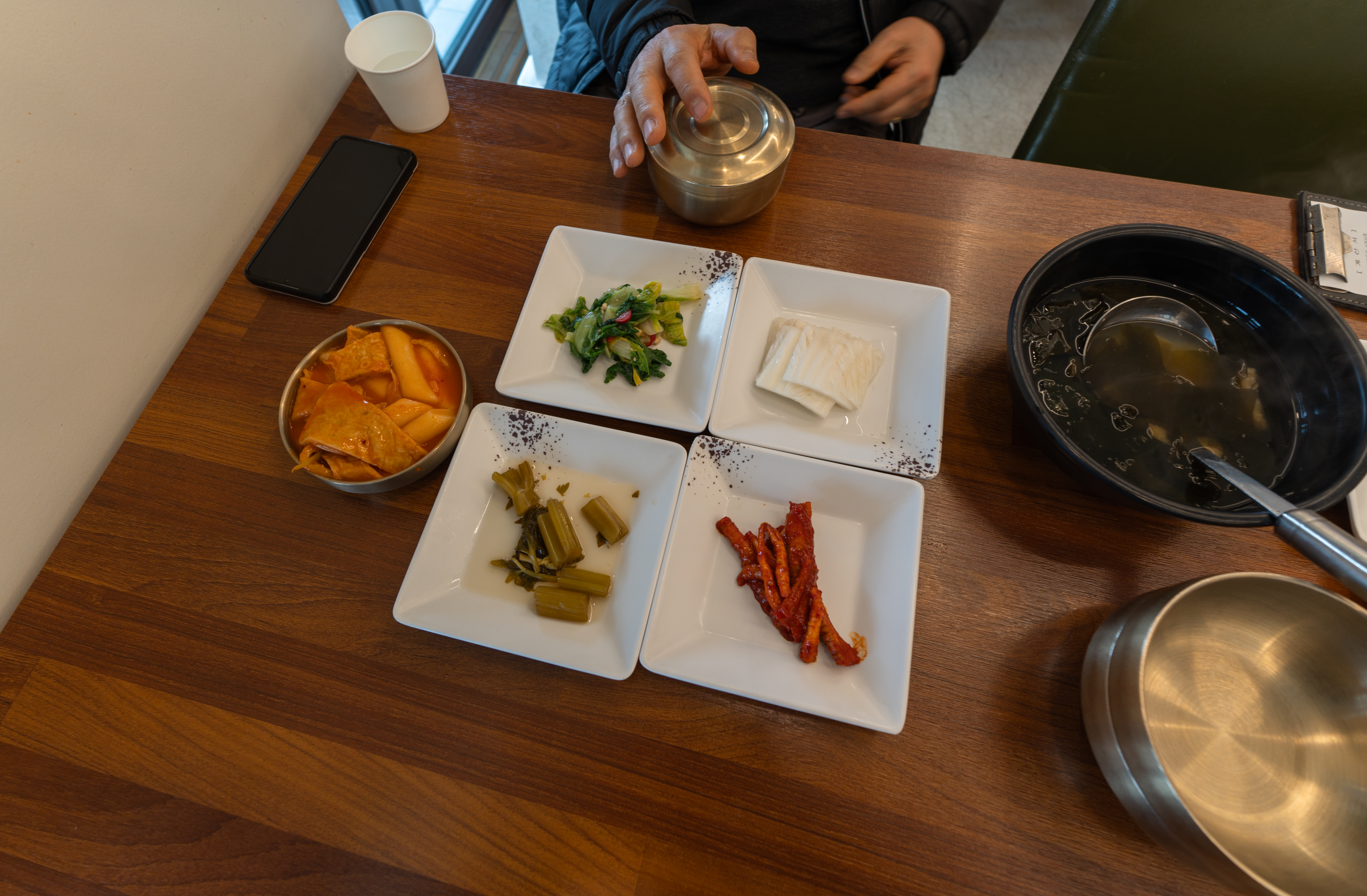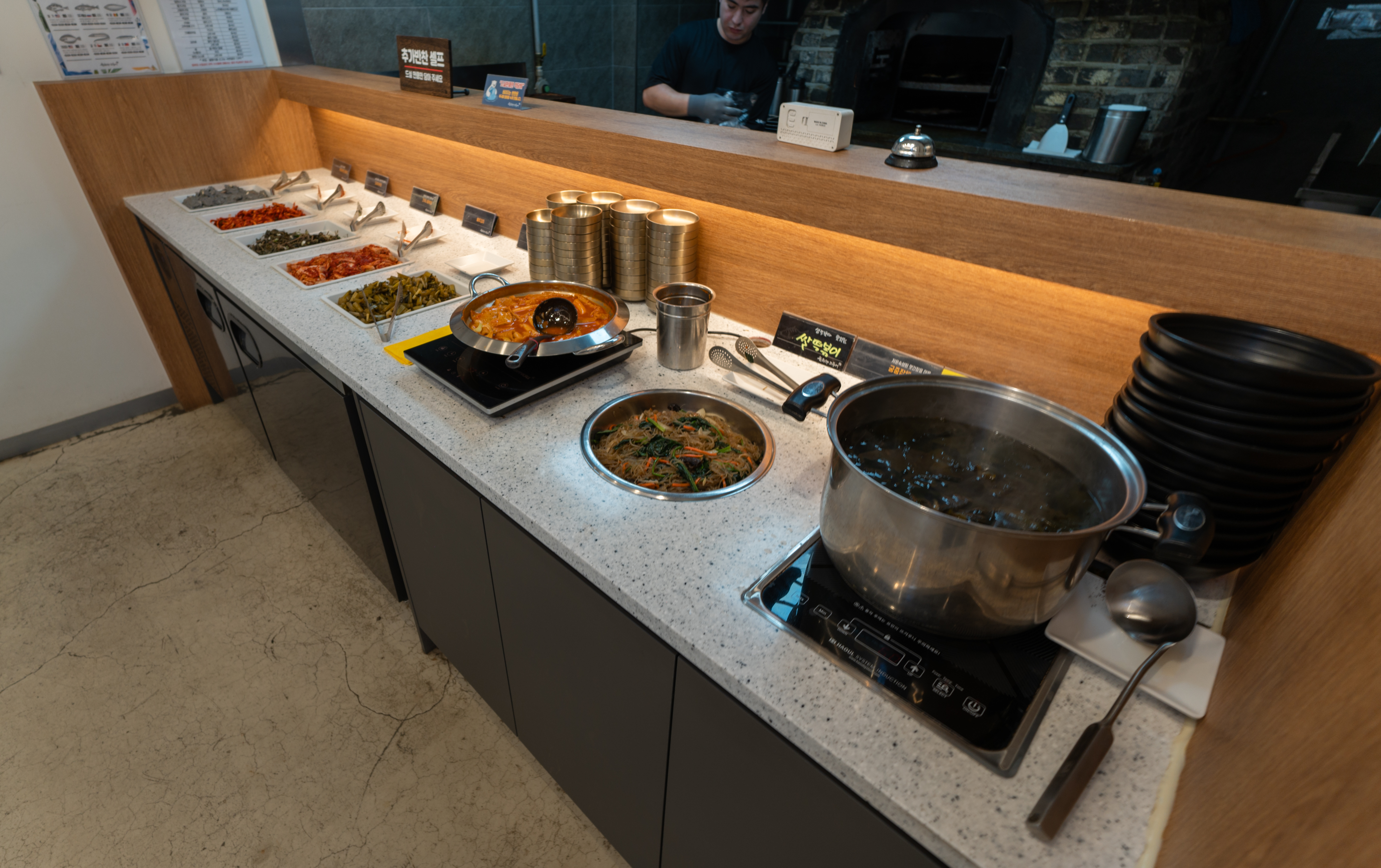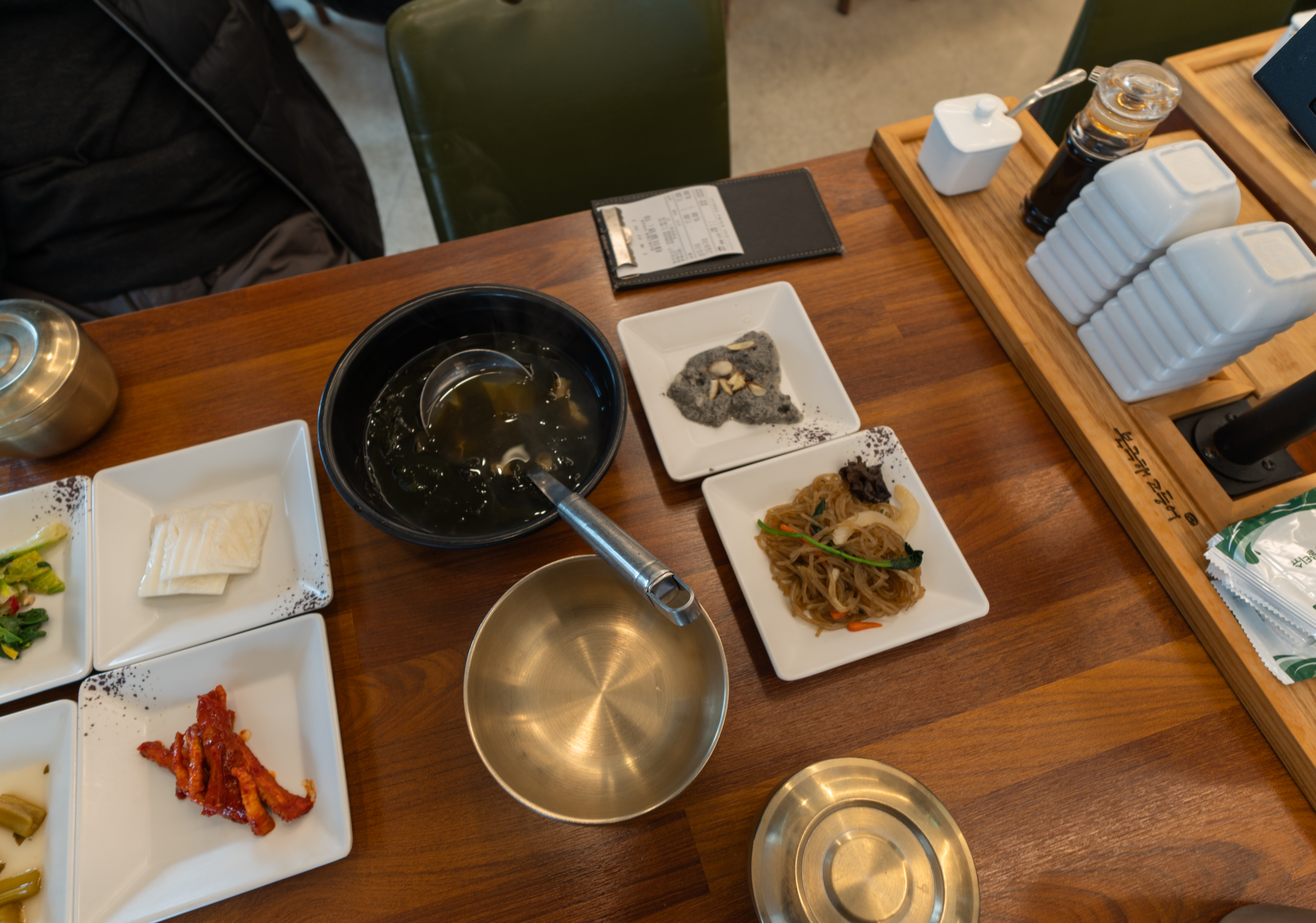 반찬들은 기본적으로 내어주시지만, 셀프바에 가면 더 다양한 반찬들을 갖추고 있어 직접 덜어 먹을 수 있었습니다. 반찬들은 건취나물무침, 도라지무침, 쌀떡볶이, 잡채, 샐러리장아찌, 연근무침, 나물무침 등이 있었습니다.