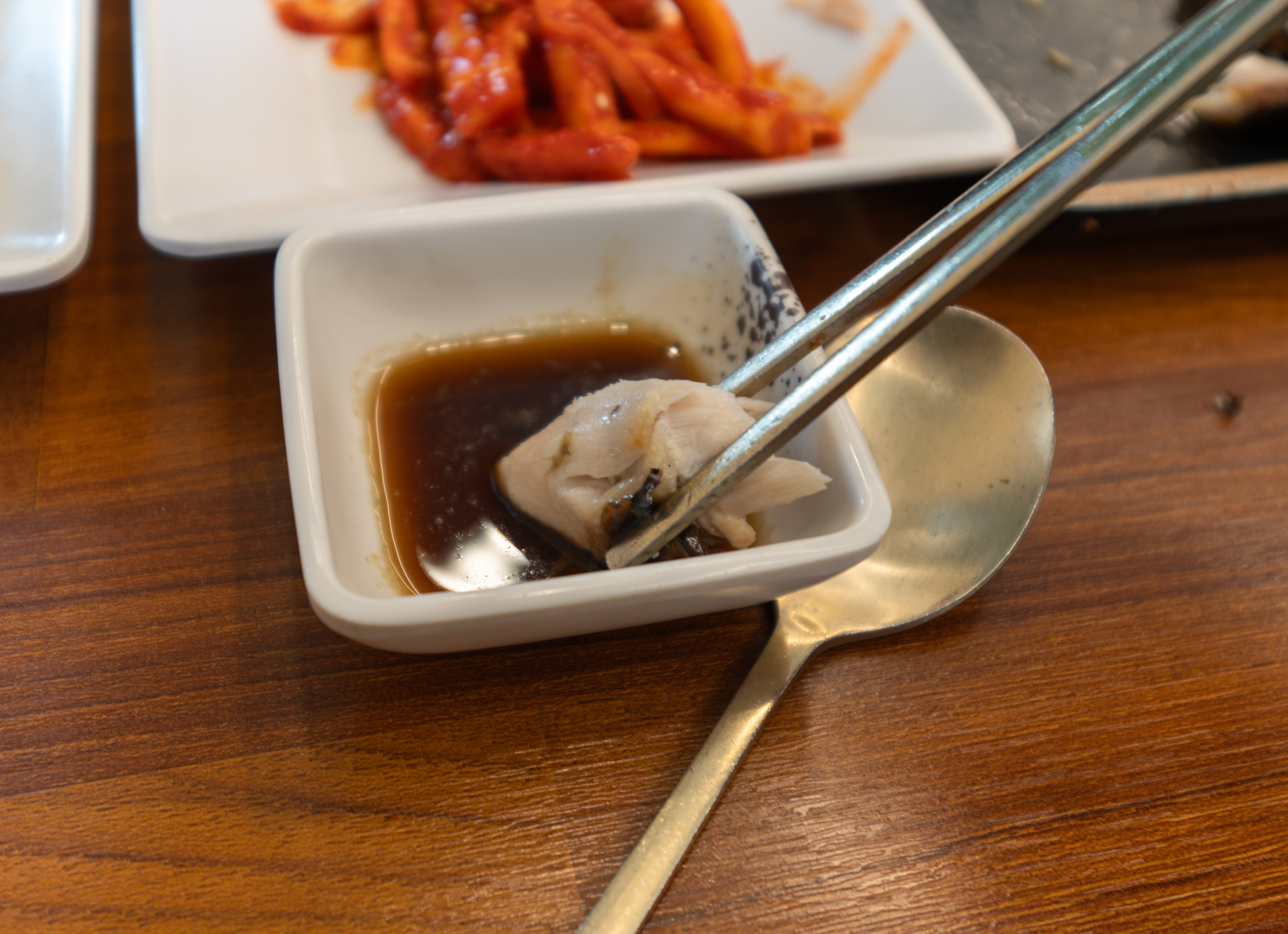 원래는 반찬과 밥이 먼저 나오지만 우선 메인 메뉴인 생선부터 소개해드리겠습니다. 생선구이는 전체적으로 겉은 바삭하고 속은 촉촉하게 잘 구워져 맛이 좋았습니다. 비린내도 없어서 맛있게 먹었습니다.