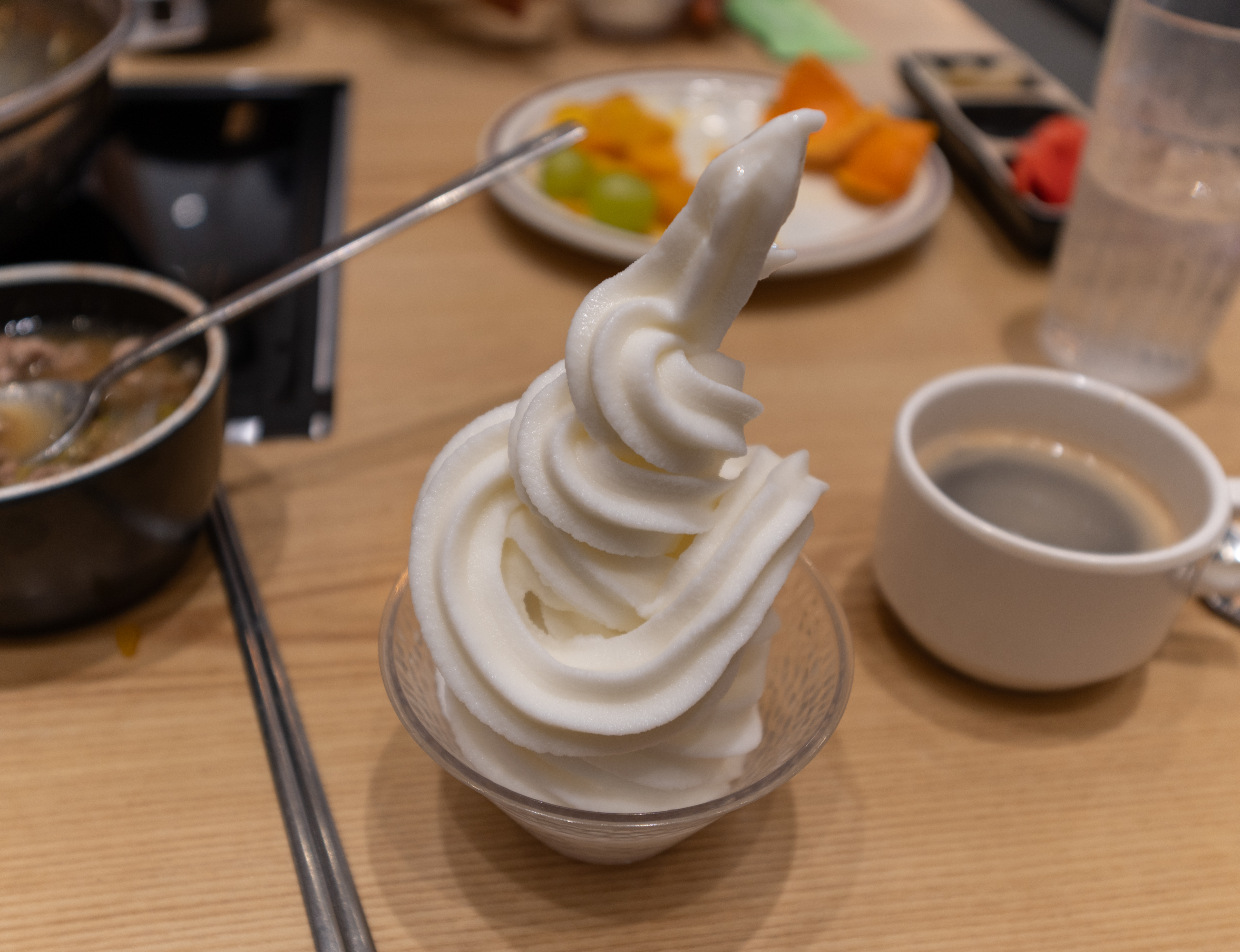 그밖에 메뉴들은 튀김류, 샐러드, 유산슬, 볶음밥, 크림파스타, 닭강정, 양념소갈비, 죽, 수프, 과일 등이 있었습니다. 아무래도 사이드로 배를 채우면 메인 메뉴인 샤브샤브에 집중을 하기 어렵기 때문에 가급적 샤브샤브 위주로 공략을 하고, 사이드 메뉴들은 간단히 입맛만 돋울 정도로 가져왔습니다.