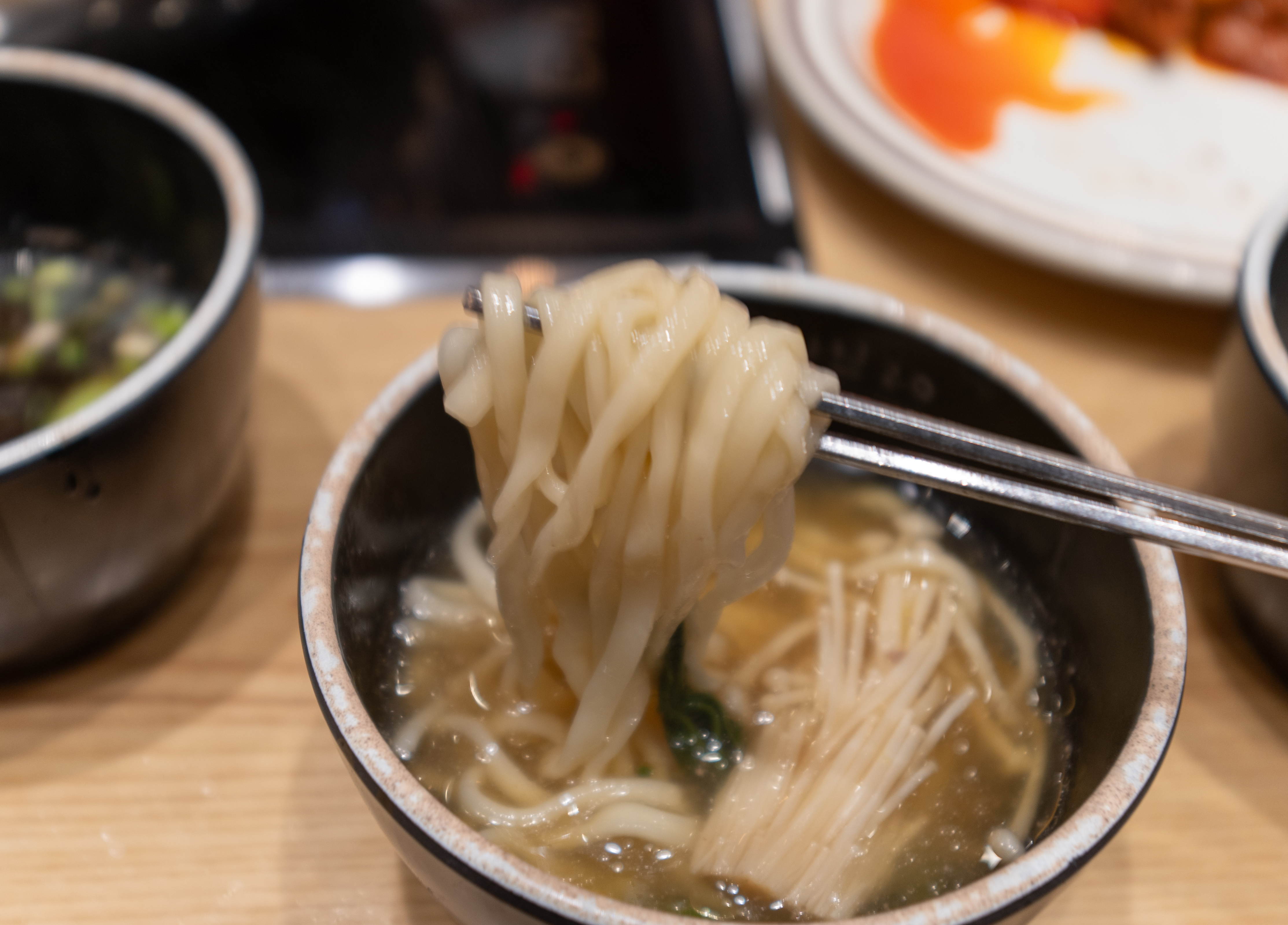 여러분은 샤브샤브 후식으로 칼국수와 죽 중에 어느 것을 더 선호하시나요? 저는 앞서도 말씀드렸듯이 샤브샤브용 소고기를 끓여낸 육수에 끓여낸 칼국수도 좋지만, 죽이 더 맛있는 것 같습니다.