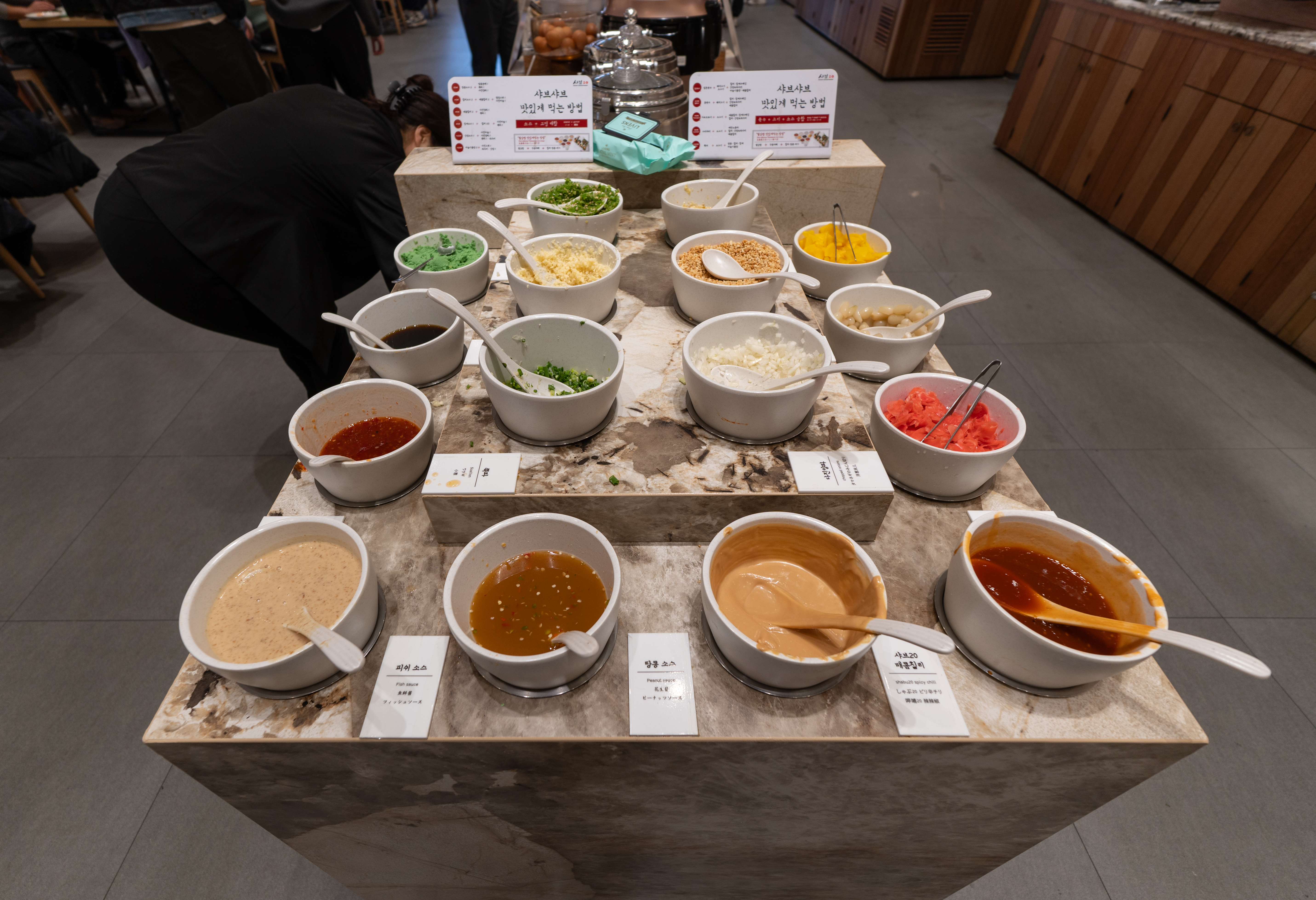 하남 무한리필 샤브샤브 샤브20 가게 내부는 건물 규모와 같이 매우 넓었습니다. 최근에 생긴 가게인만큼 가게는 전체적으로 깔끔한 느낌이었고, 자리 간 간격이 적당해 쾌적했습니다.