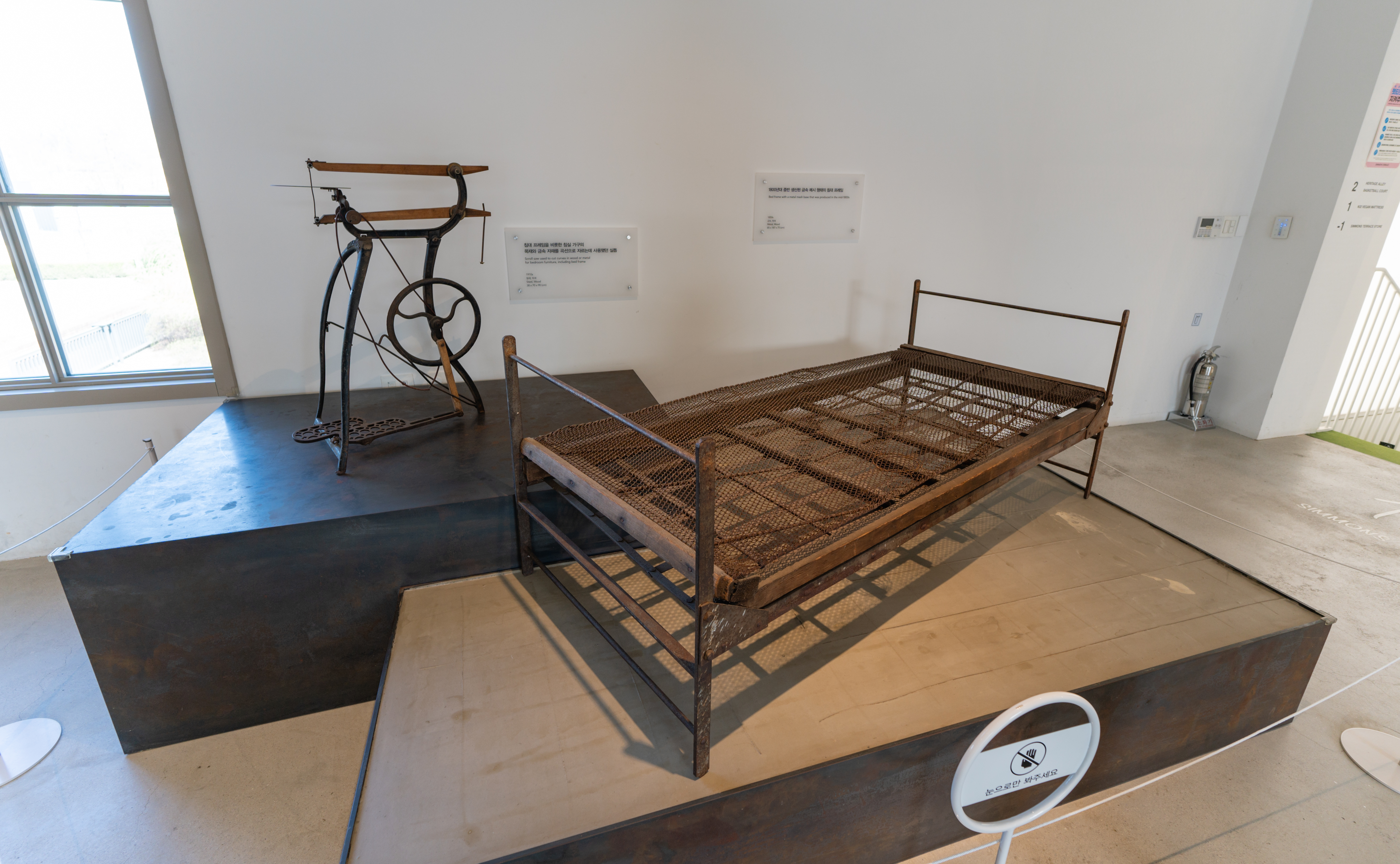 시몬스테라스 2층에는 가볍게 시몬스의 해리티지를 볼 수 있는 공간이 마련되어 있었는데요, 시몬스의 역사에 따른 수집한 자료들과 이전에 침대를 만들때 사용되던 기구들 매트리스 샘플 등이 전시되어 있었습니다. 이 전시 공간은 제가 이전에 방문했을 때와 크게 달라진 부분은 없었습니다.