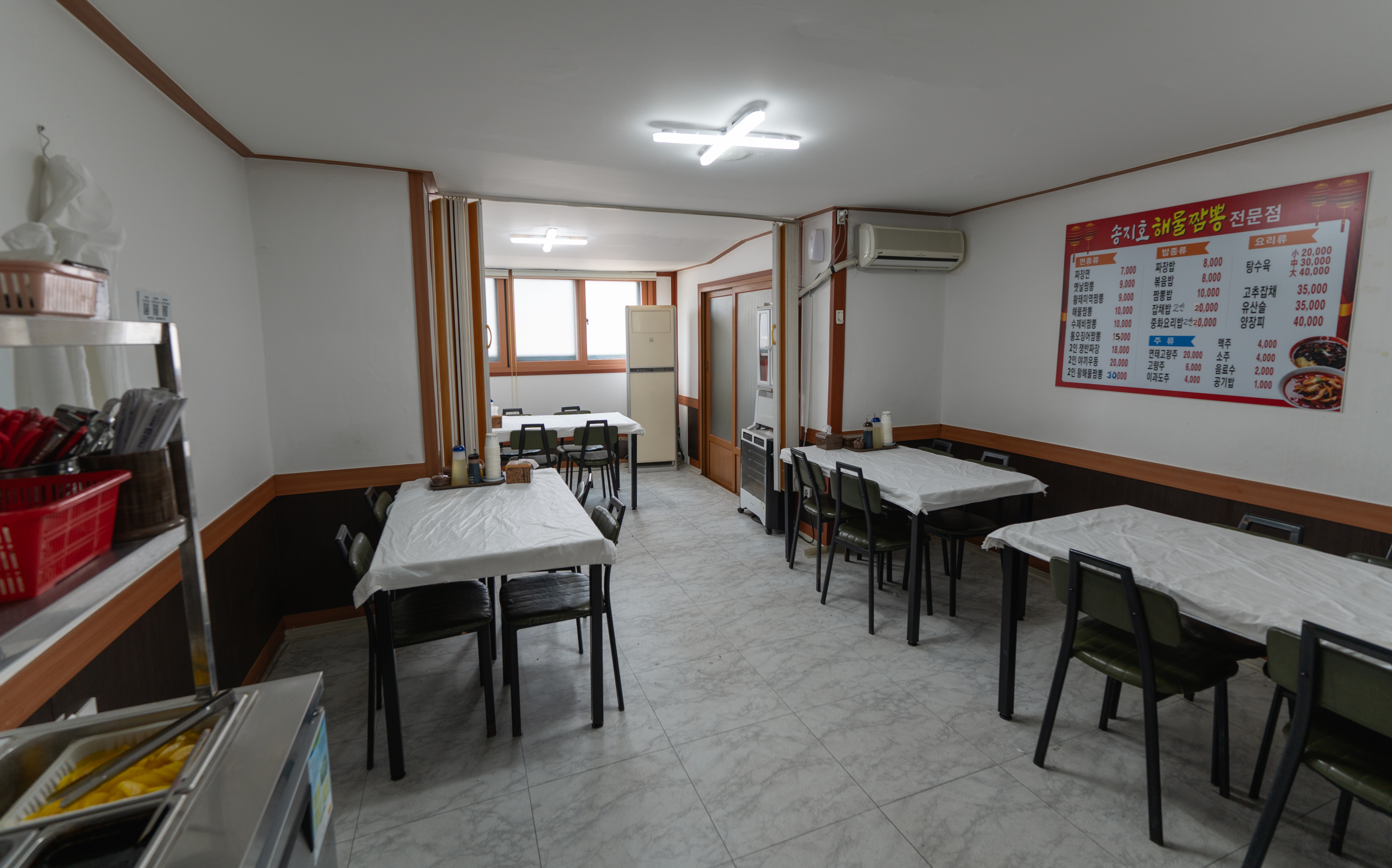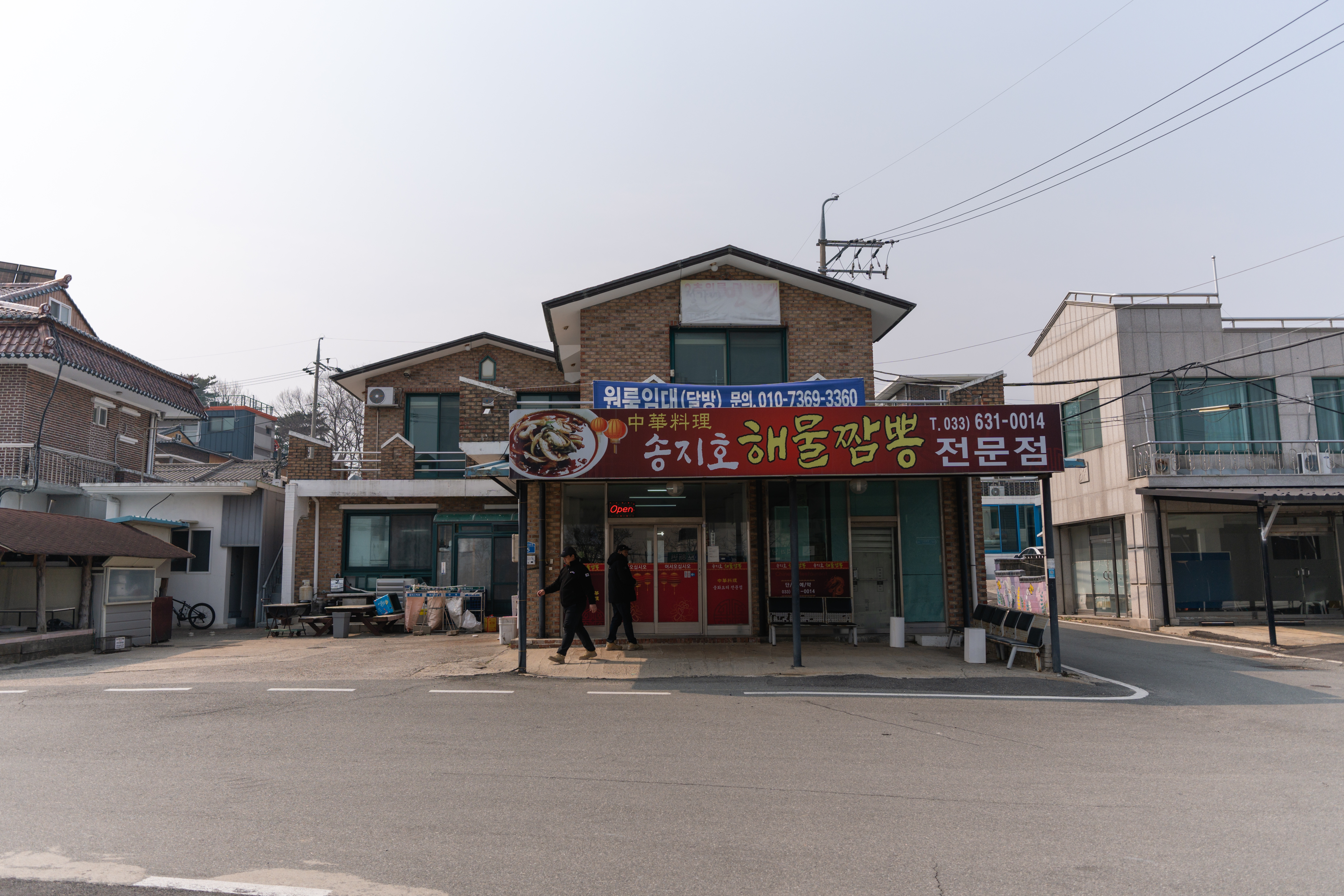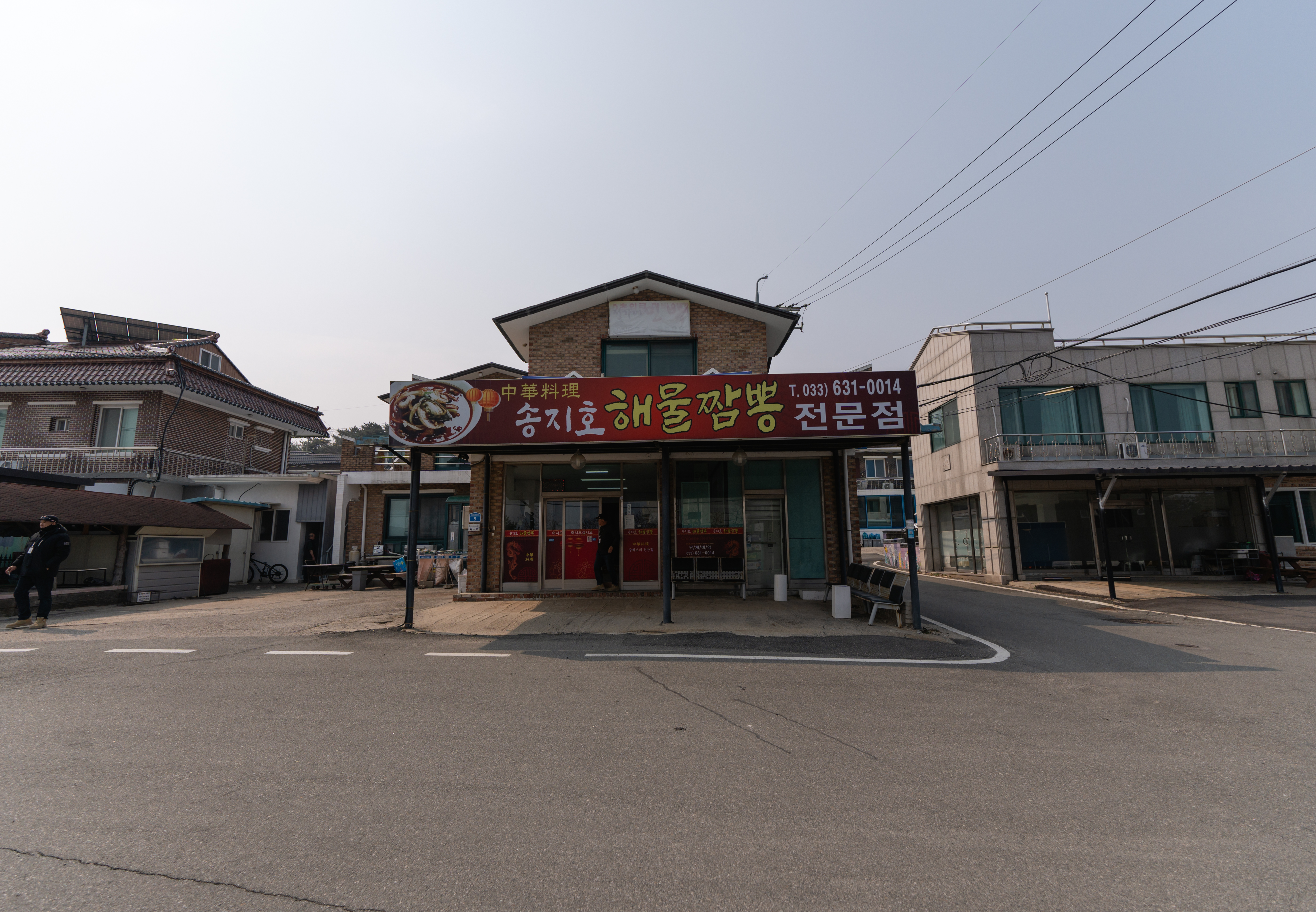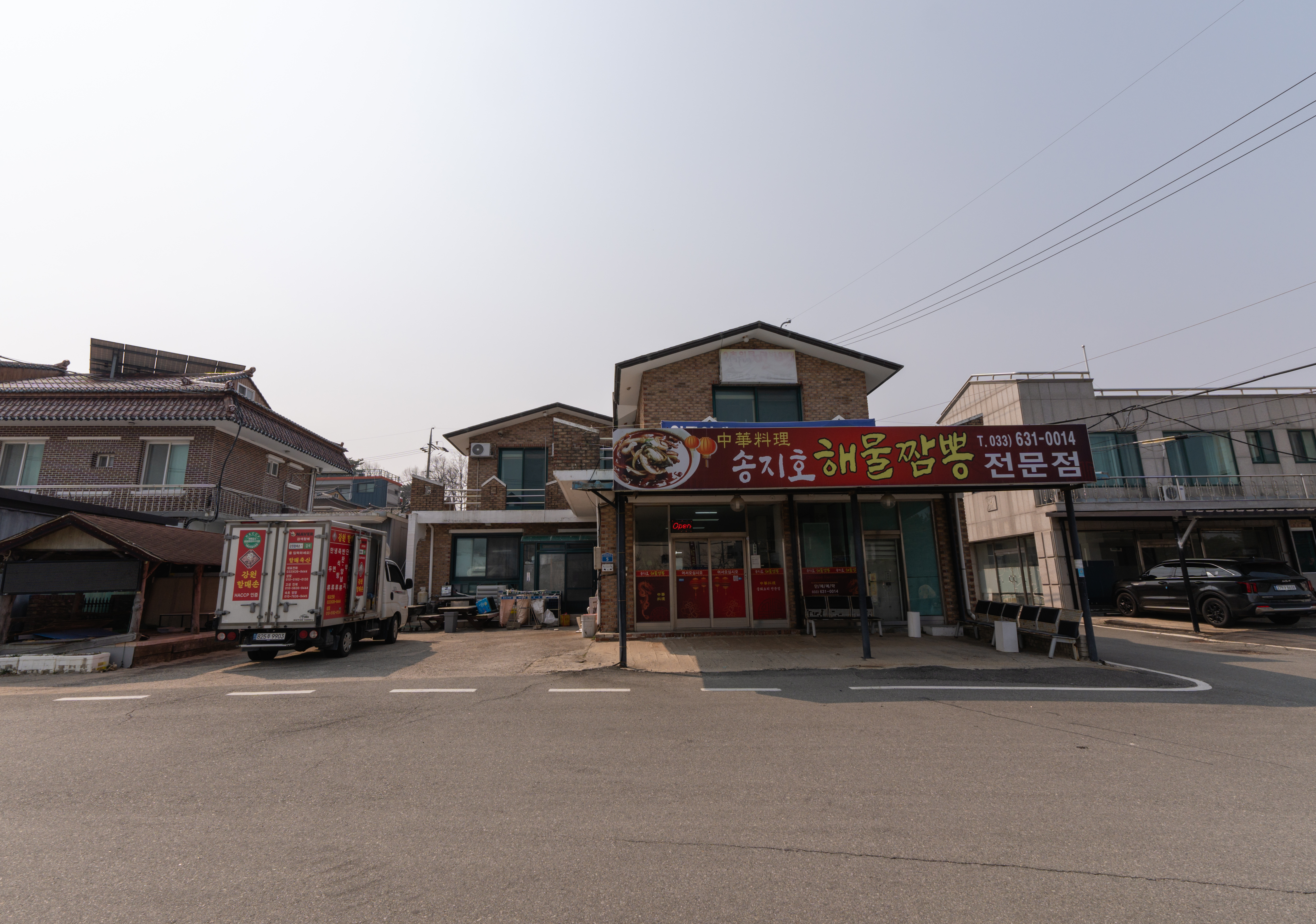 정식 명칭은 송지호 해물짬뽕 전문점으로 위치는 강원특별자치도 고성군 죽왕면 삼포민박촌2길 5, 1층에 위치해 있었습니다. 이곳은 현지 손님들도 많이 이용하는 가게였는데요, 주차는 가게 앞 주차장에 하면 되었습니다. 그리고, 매주 화요일은 정기휴일이라고 합니다.