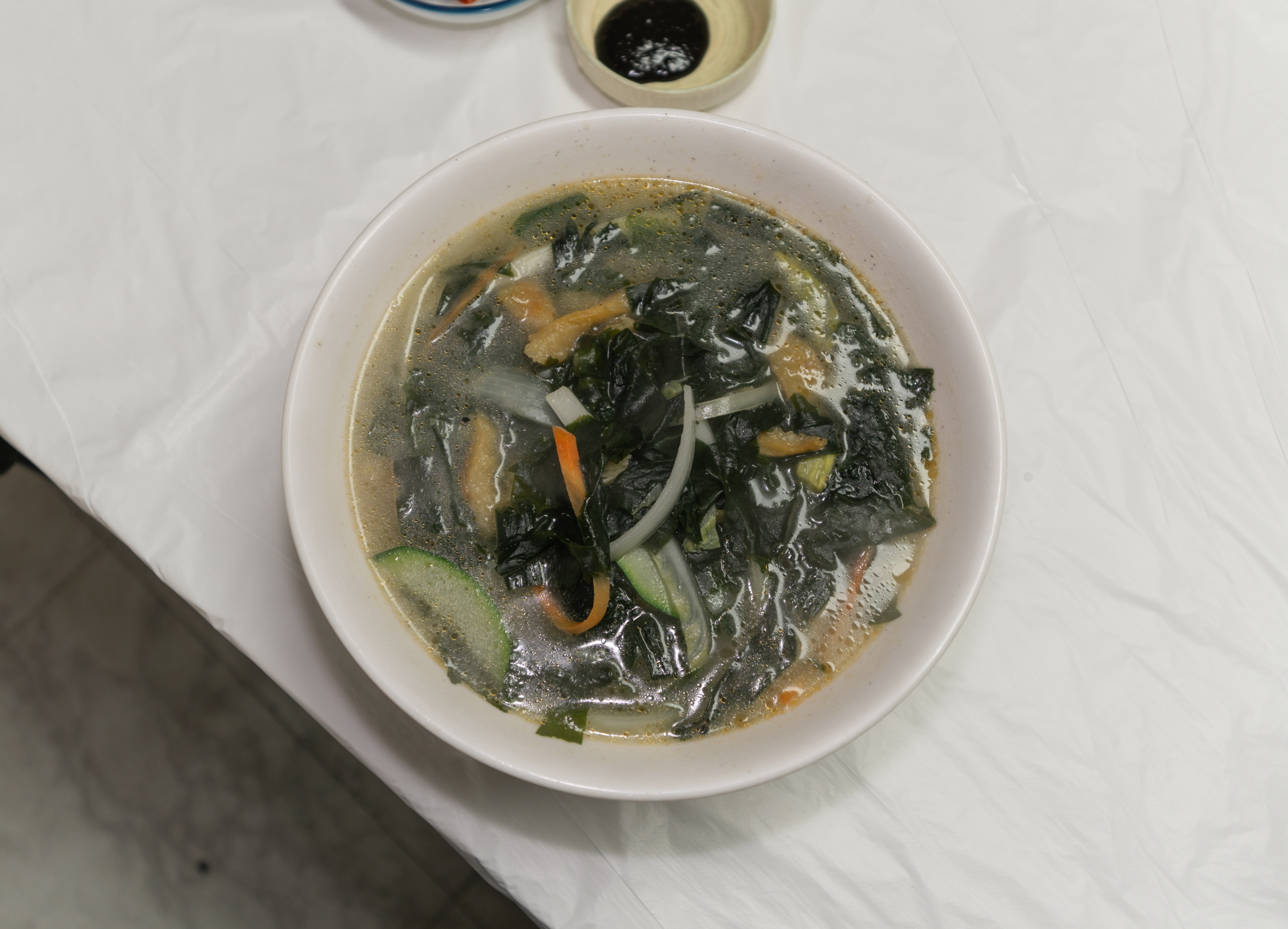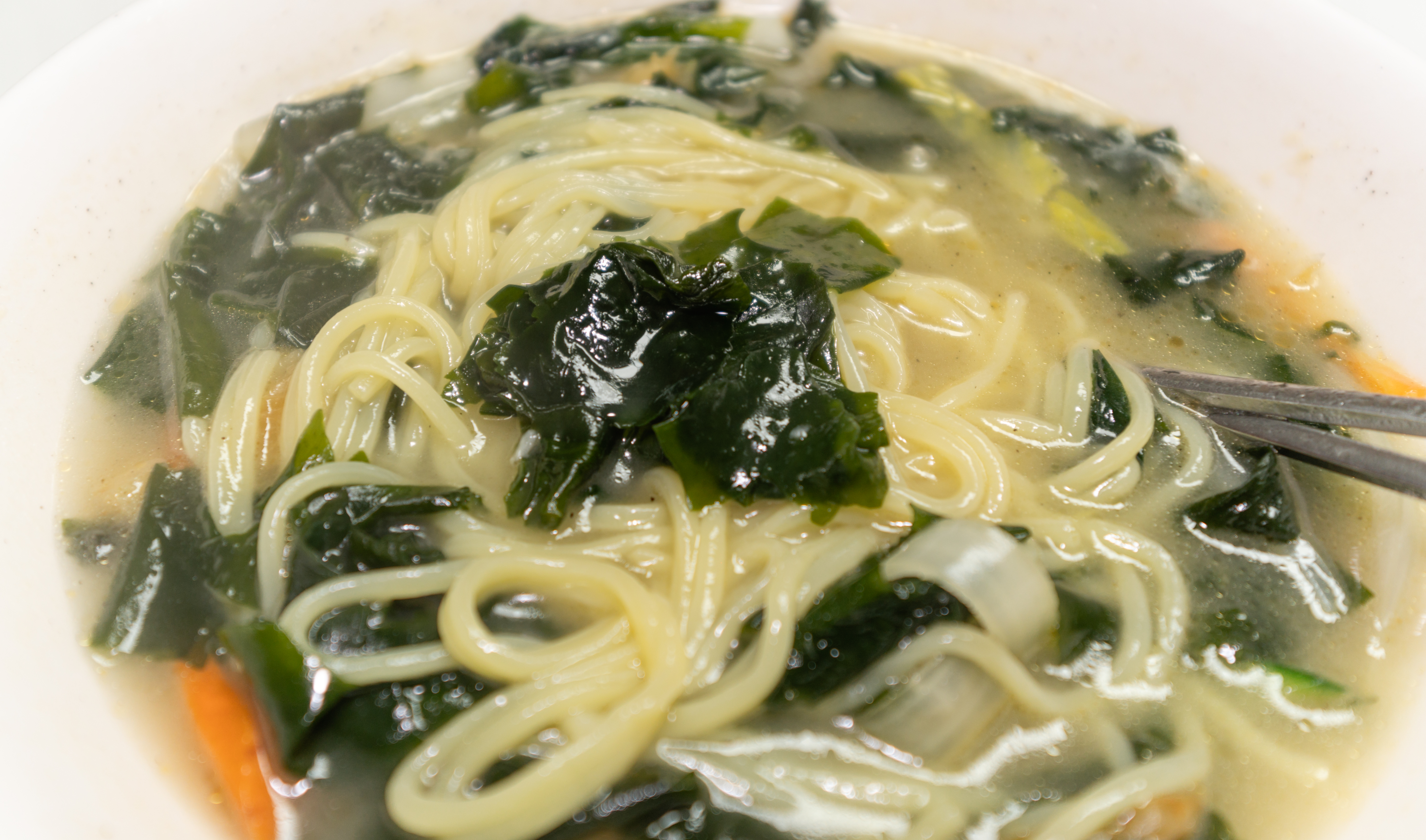 송지호해물짬뽕의 황태미역짬뽕은 양파와 호박, 황태 그리고 면과 미역이 들어간 짬뽕이었습니다. 국물은 들기름이 들어가는지 살짝 구수하면서도 깊은 맛을 내어주고 있었습니다. 미역은 잘게 잘라서 나오기 때문에 일반 짬뽕처럼 젓가락으로 먹어도 크게 불편함이 없었습니다. 황태도 제법 많이 들어있어서 한 끼 든든하게 식사할 수 있었습니다.