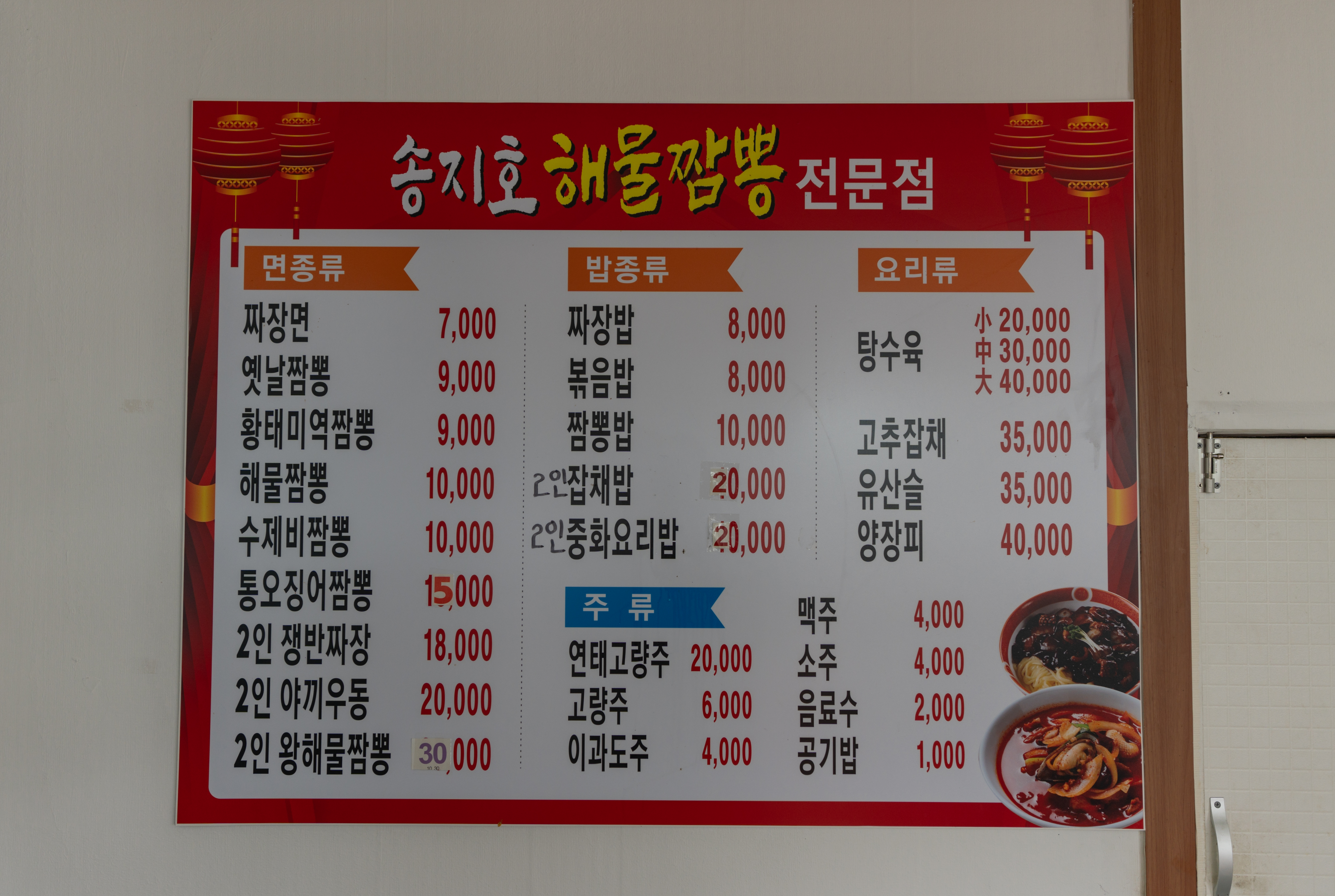 갑자기 바다가 보고 싶어서 강원도 동해쪽 라인을 훑으며 다니다가, 고성에 위치한 송지호 해물짬뽕에 방문했습니다. 이곳은 해물짬뽕 전문점으로 일반적인 짬뽕도 판매하지만, 유튜브로 이색적인 메뉴를 소개하는 제 눈을 사로잡는 메뉴인 황태미역짬뽕을 판매하고 있었습니다.