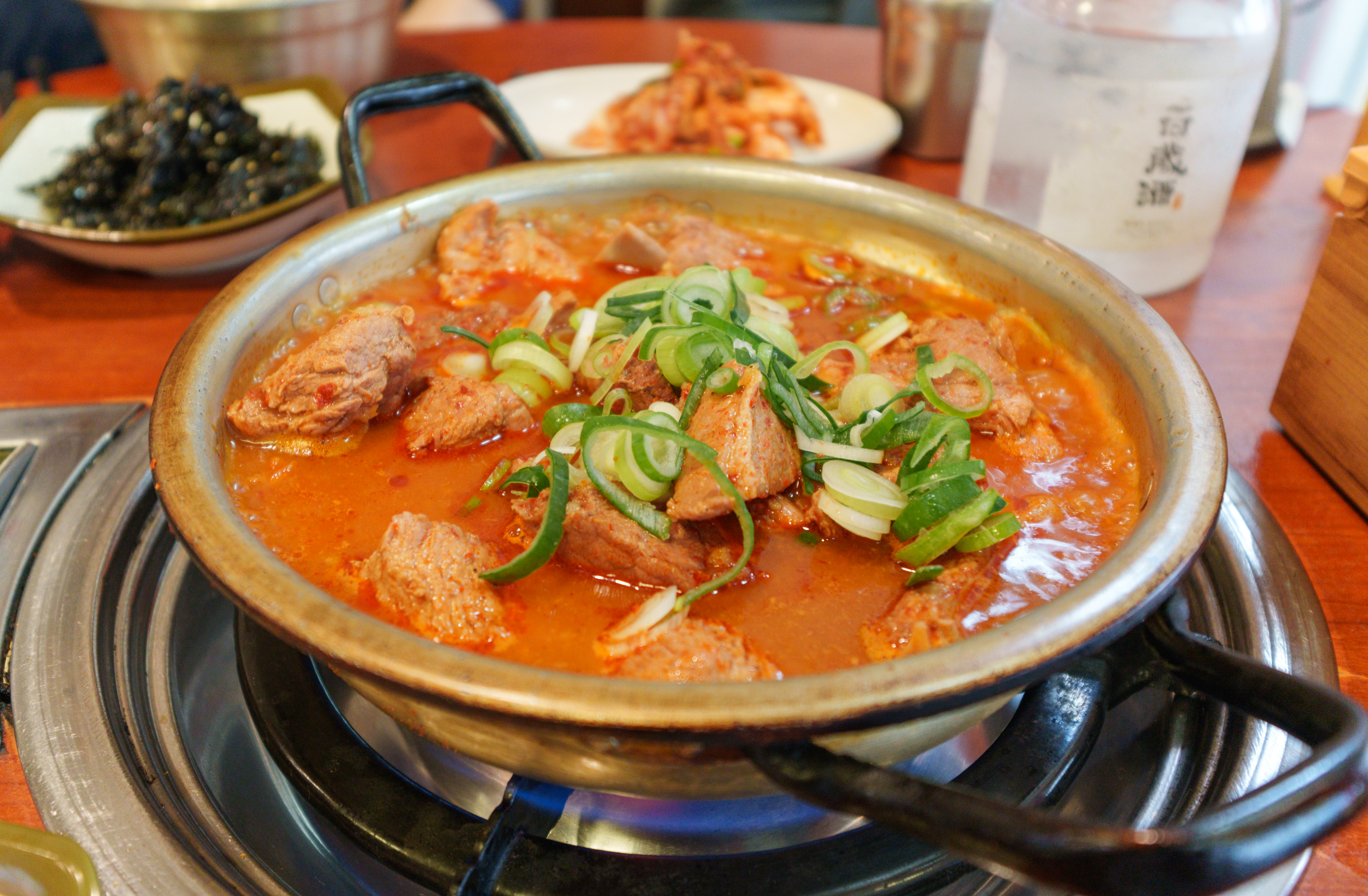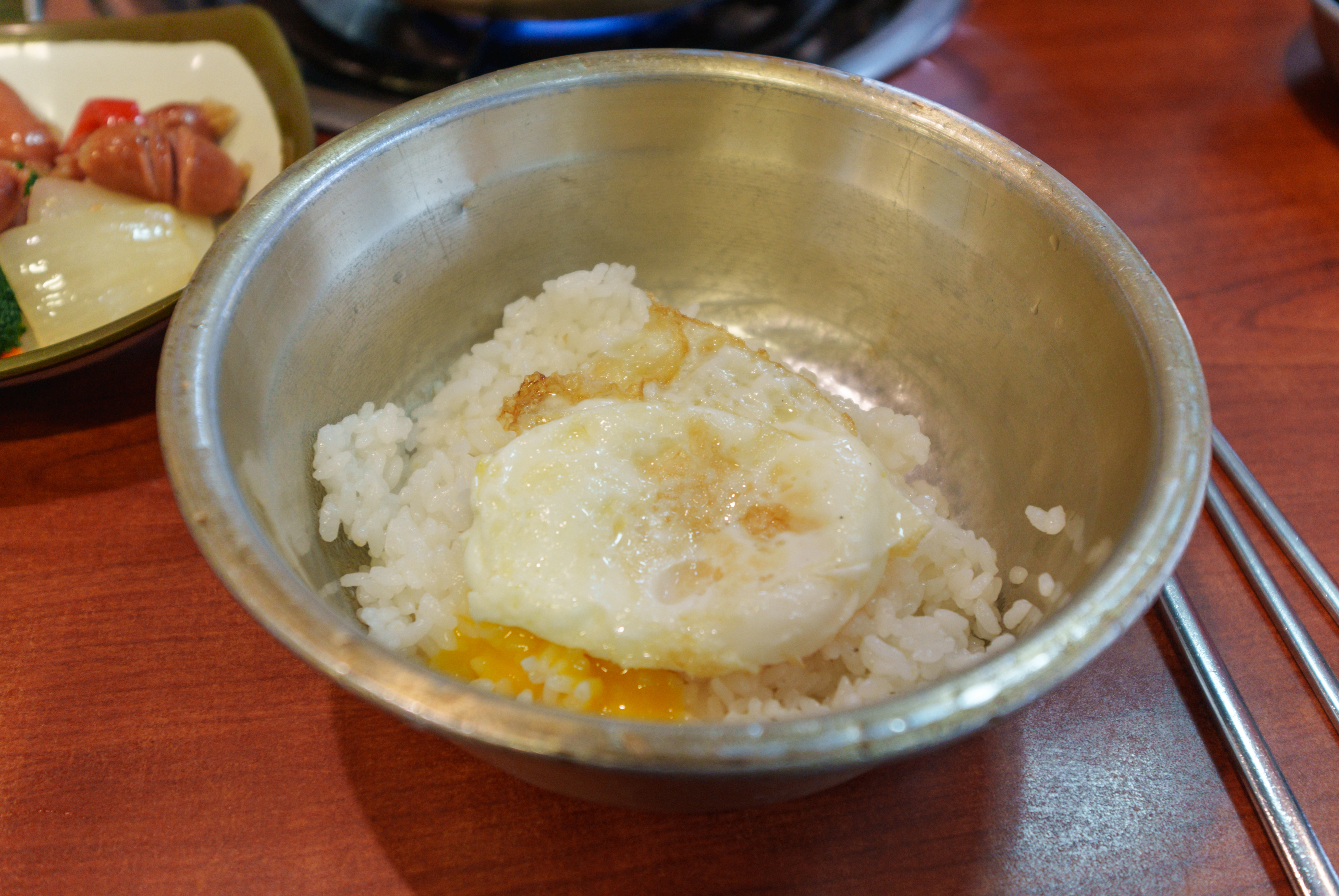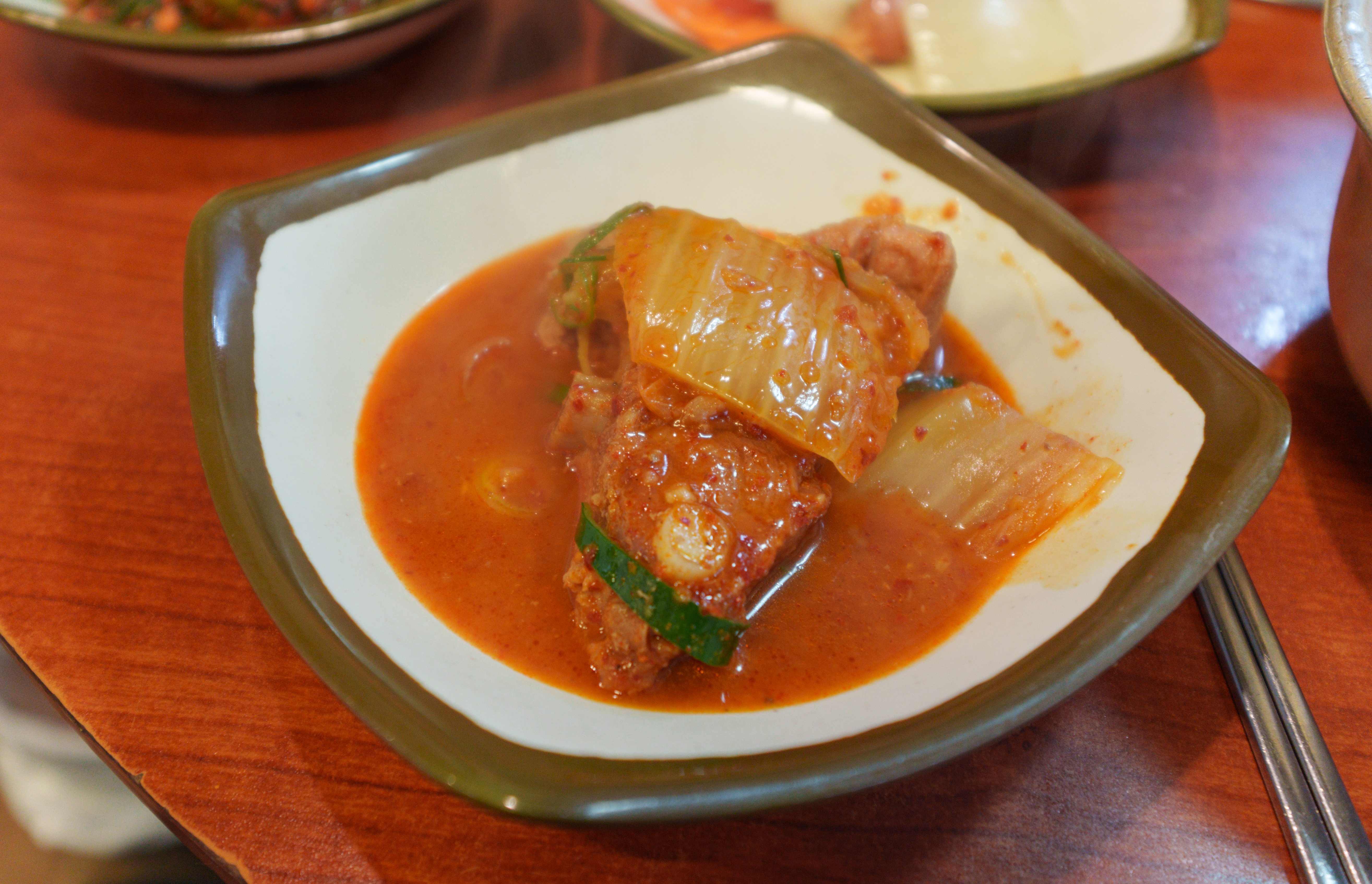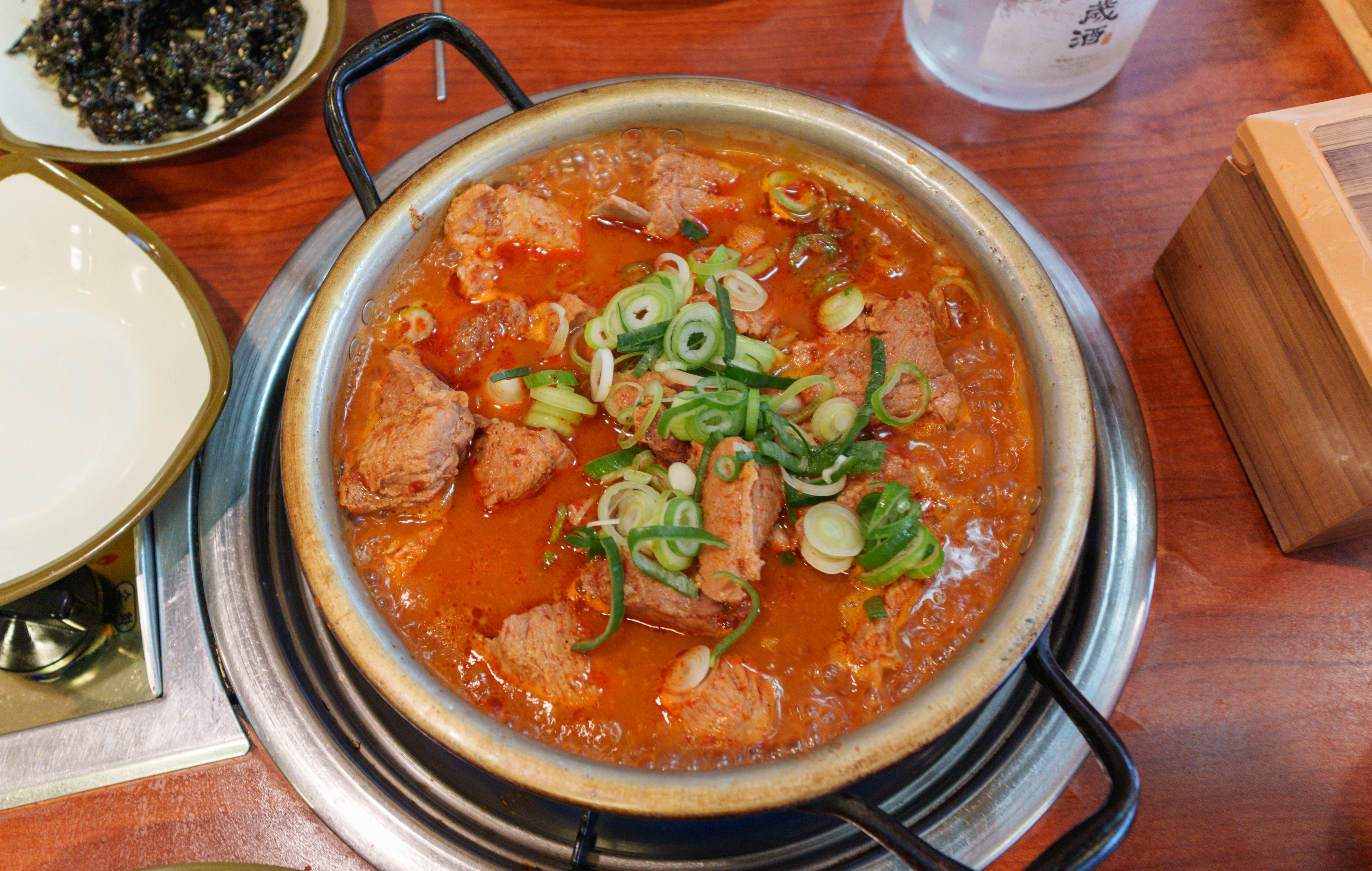 매운 갈비찜은 위와 같이 양푼 냄비에 제공되고 있었습니다. 달걀프라이 밥에 슥슥 비벼먹으면 되었는데요, 파래자반이랑 양푼 그릇에 넣고 비벼서 먹으면 되었습니다. 매운갈비김치찜의 맛은 김치찜이나 짜글이 느낌(?)과도 비슷했습니다. 조금 단 맛이 강하긴 했는데, 무난하게 먹을만 했습니다.