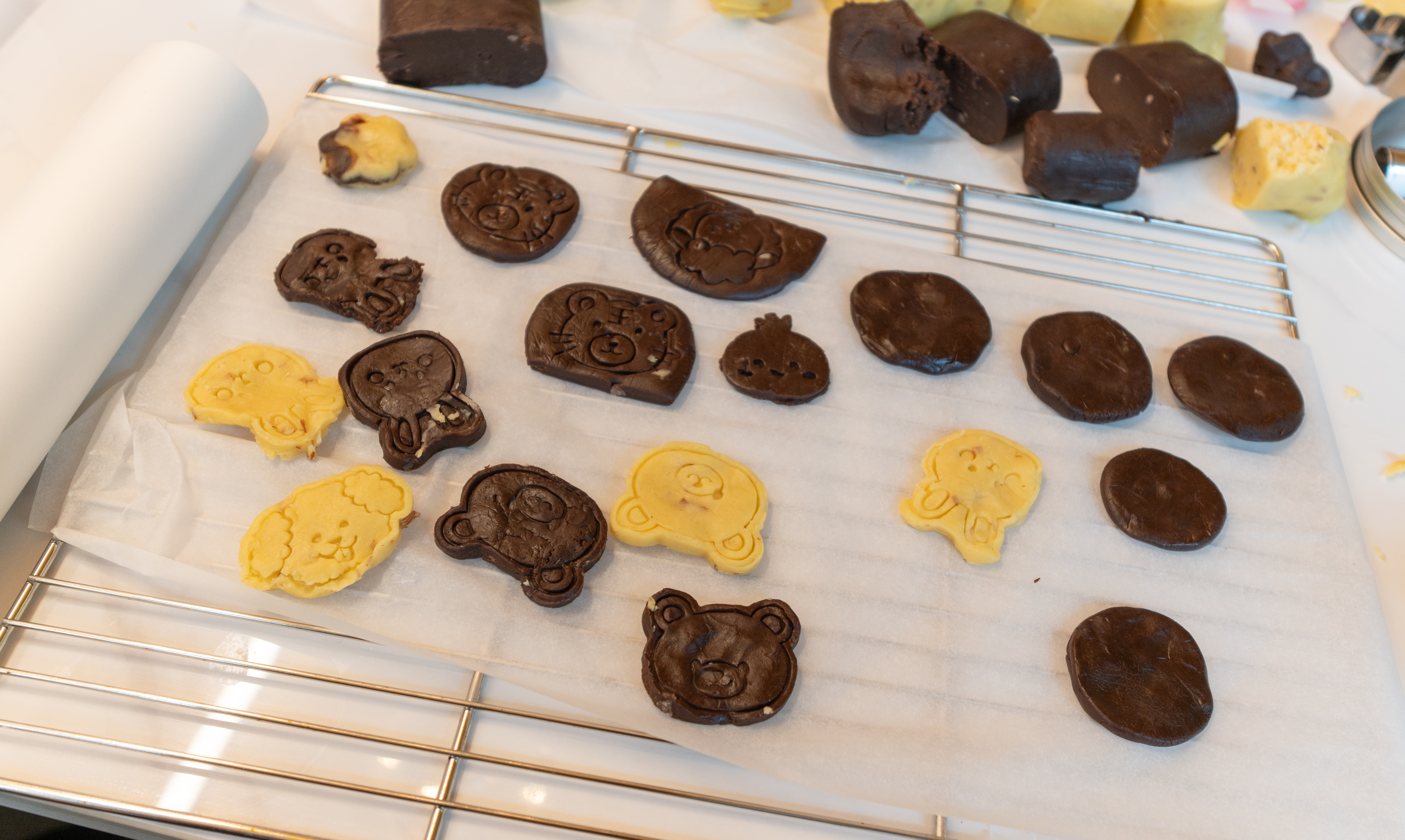 쿠키 반죽은 'aroa1004'님이 준비 해오신 쿠키 반죽을 적당한 크기로 나누고, 일정 두께로 만든 뒤 틀을 이용해 찍어내면 되었습니다. 어떤 분은 칼로 반죽을 썰어서 만들기도 하고, 다른 멤버는 캐릭터 모양을 만들기도 했습니다.