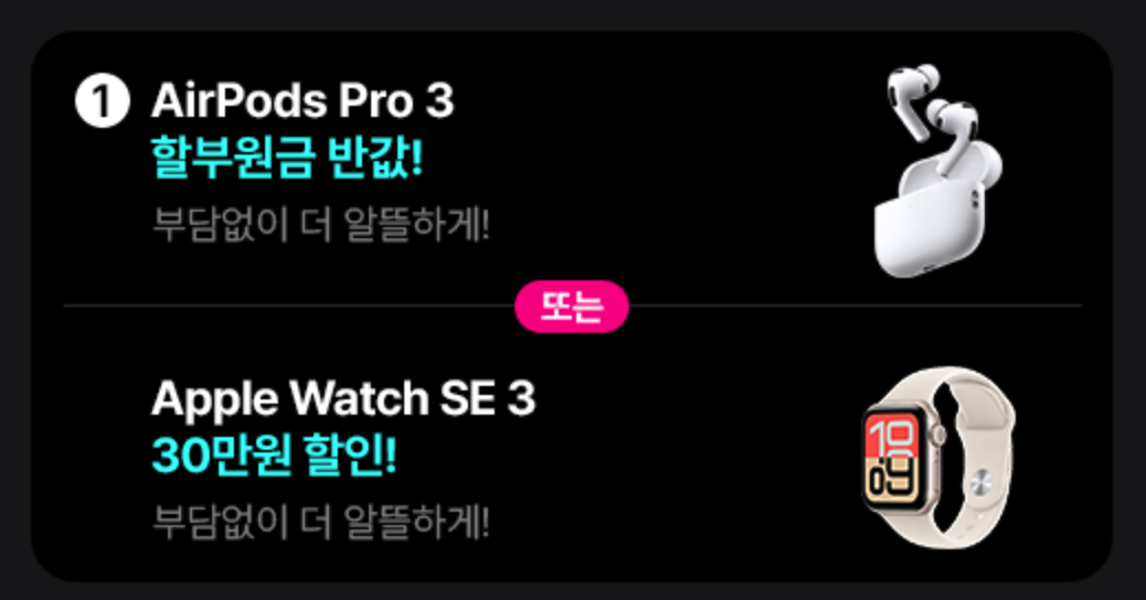 그리고 KT 닷컴을 통해 아이폰 17 프로를 구입하면, 7% 추가요금 할인이나, 골프존 프리미엄, SSG PAY, 티머니, N페이 등 혜택이나, 에어팟프로, 애플워치 등의 사은품까지 다양한 혜택이 있어 나중에 저도 새로운 휴대폰이 나오거든 구입을 고려할 것 같습니다.